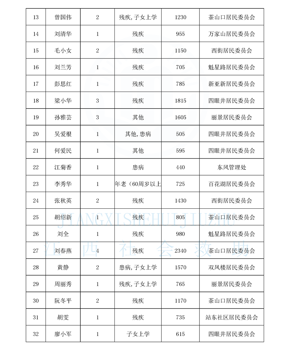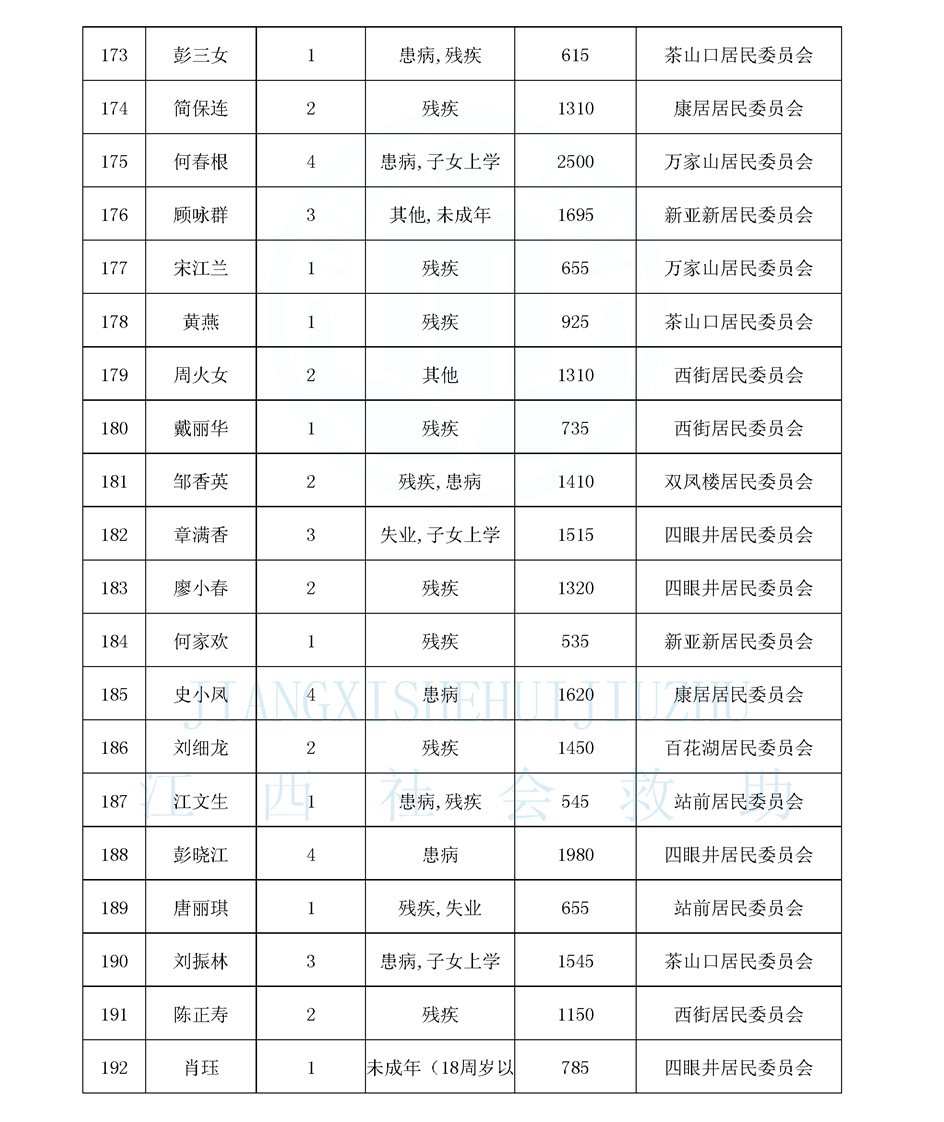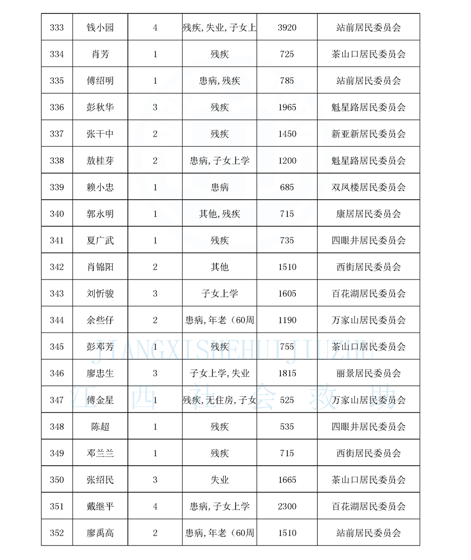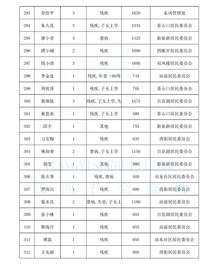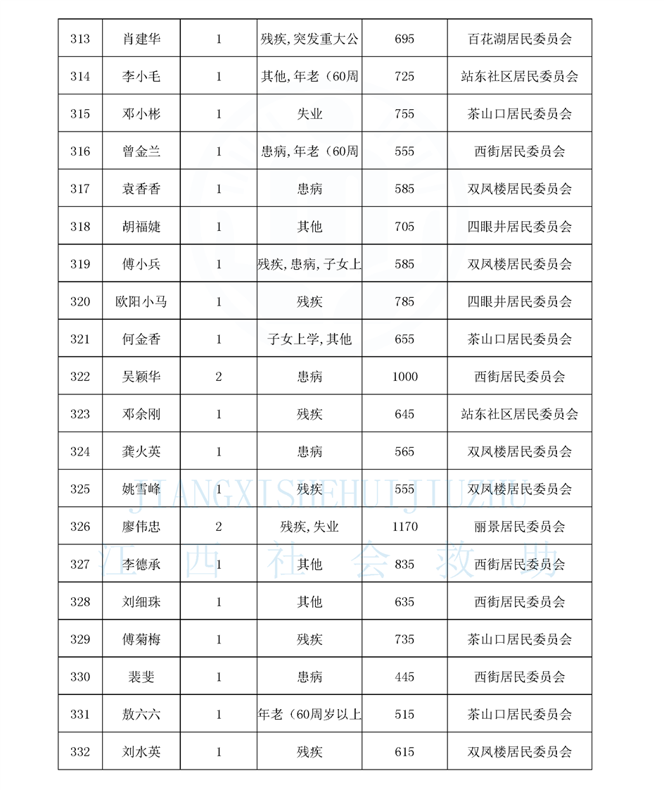江西省最低生活保障對象公布名單(城南街道1月)