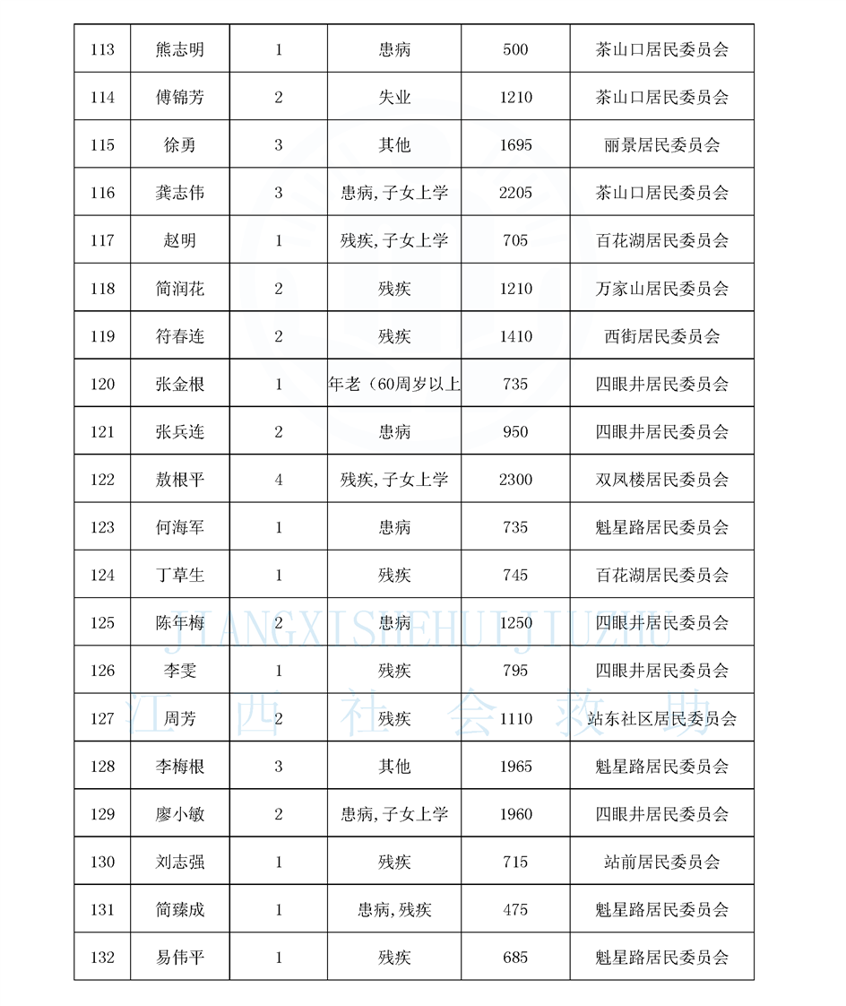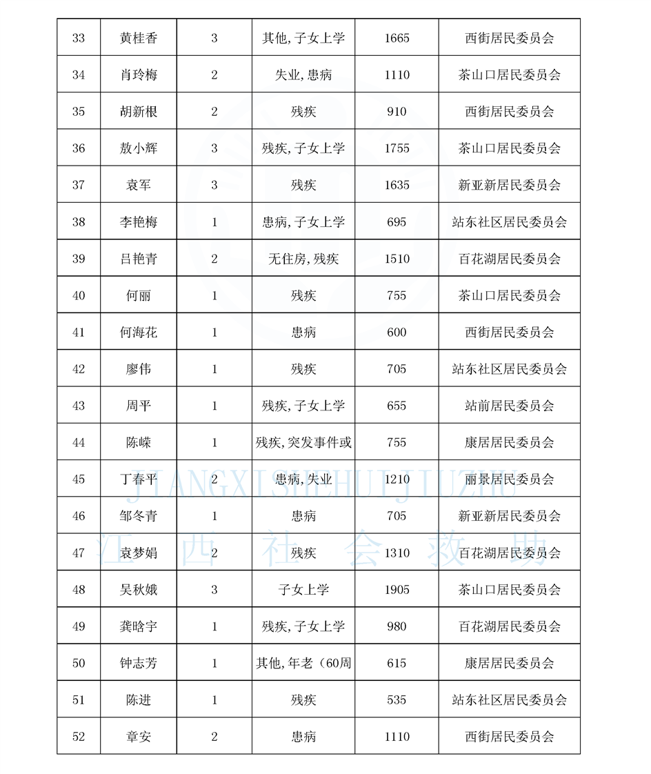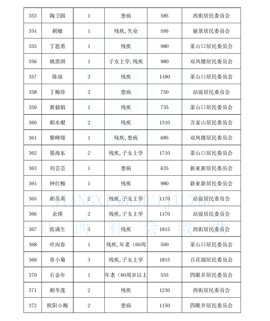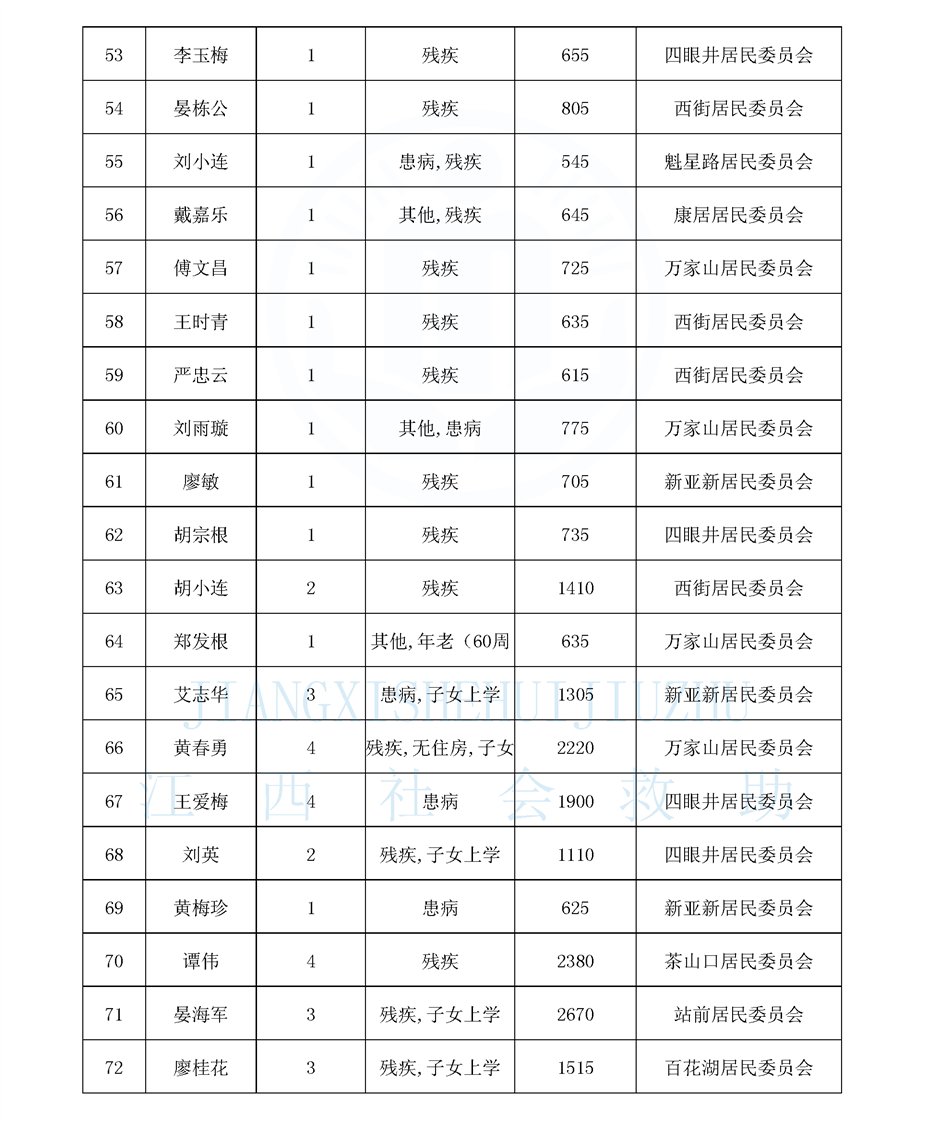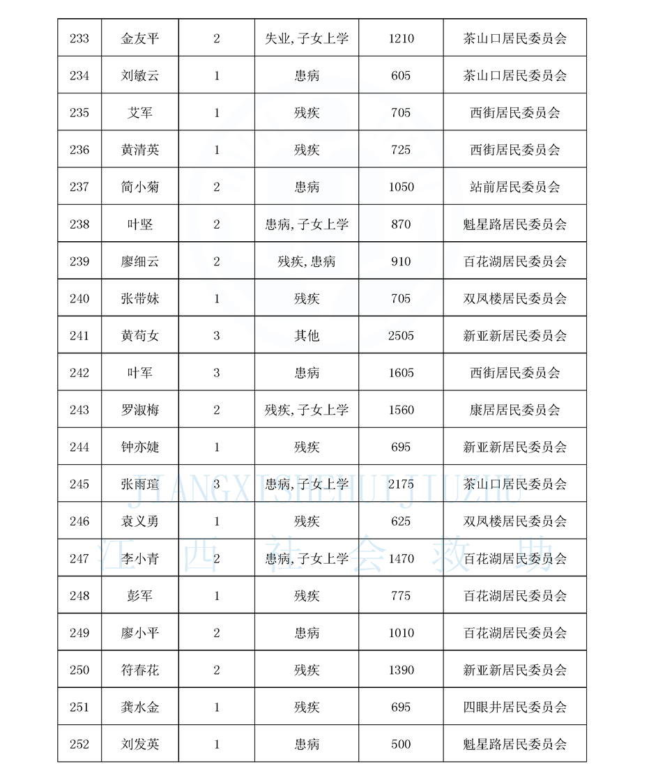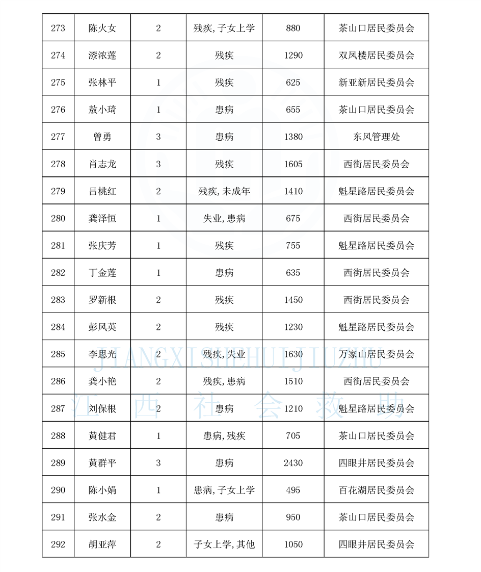 江西省最低生活保障對象公布名單(城南街道1月)