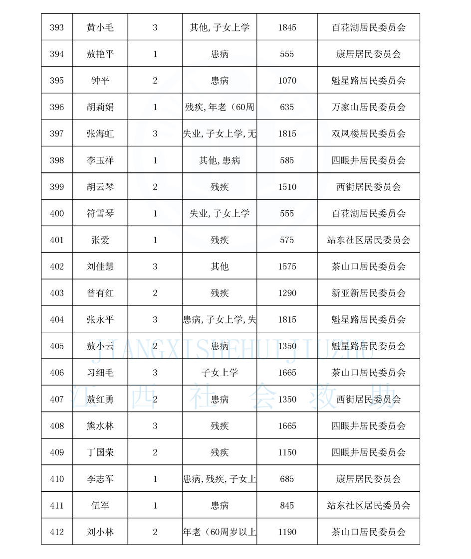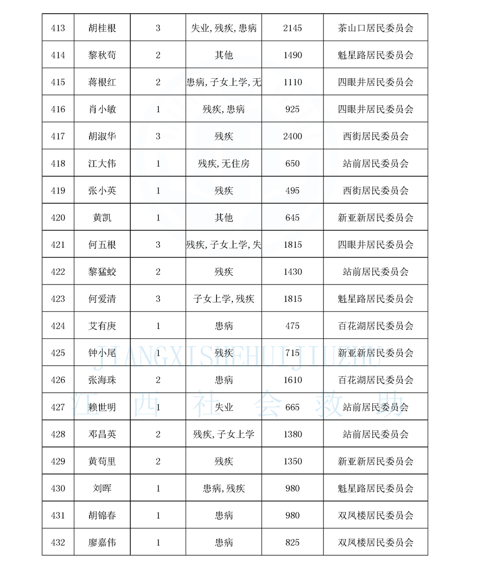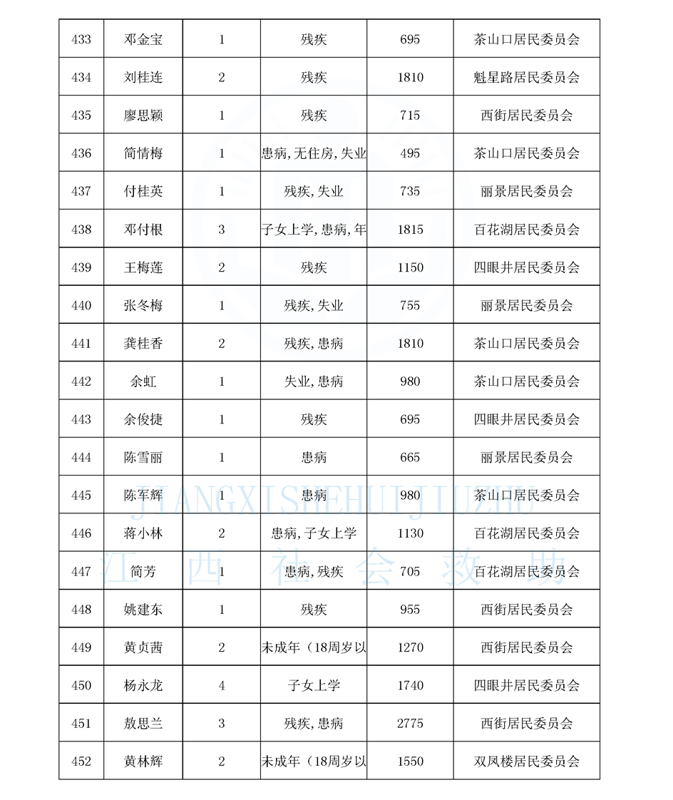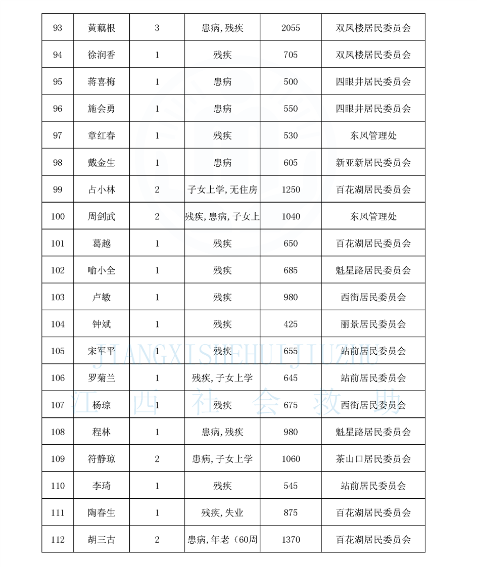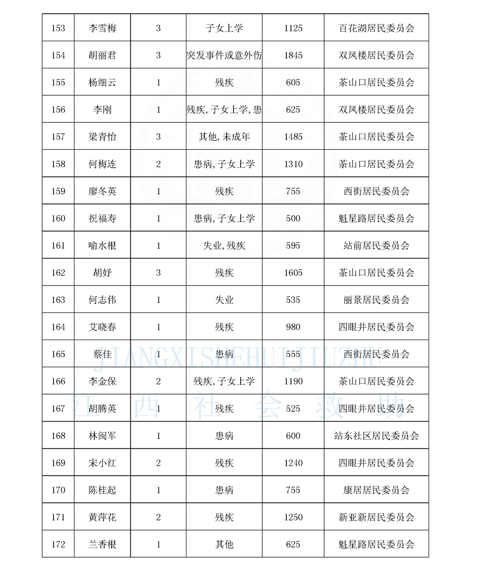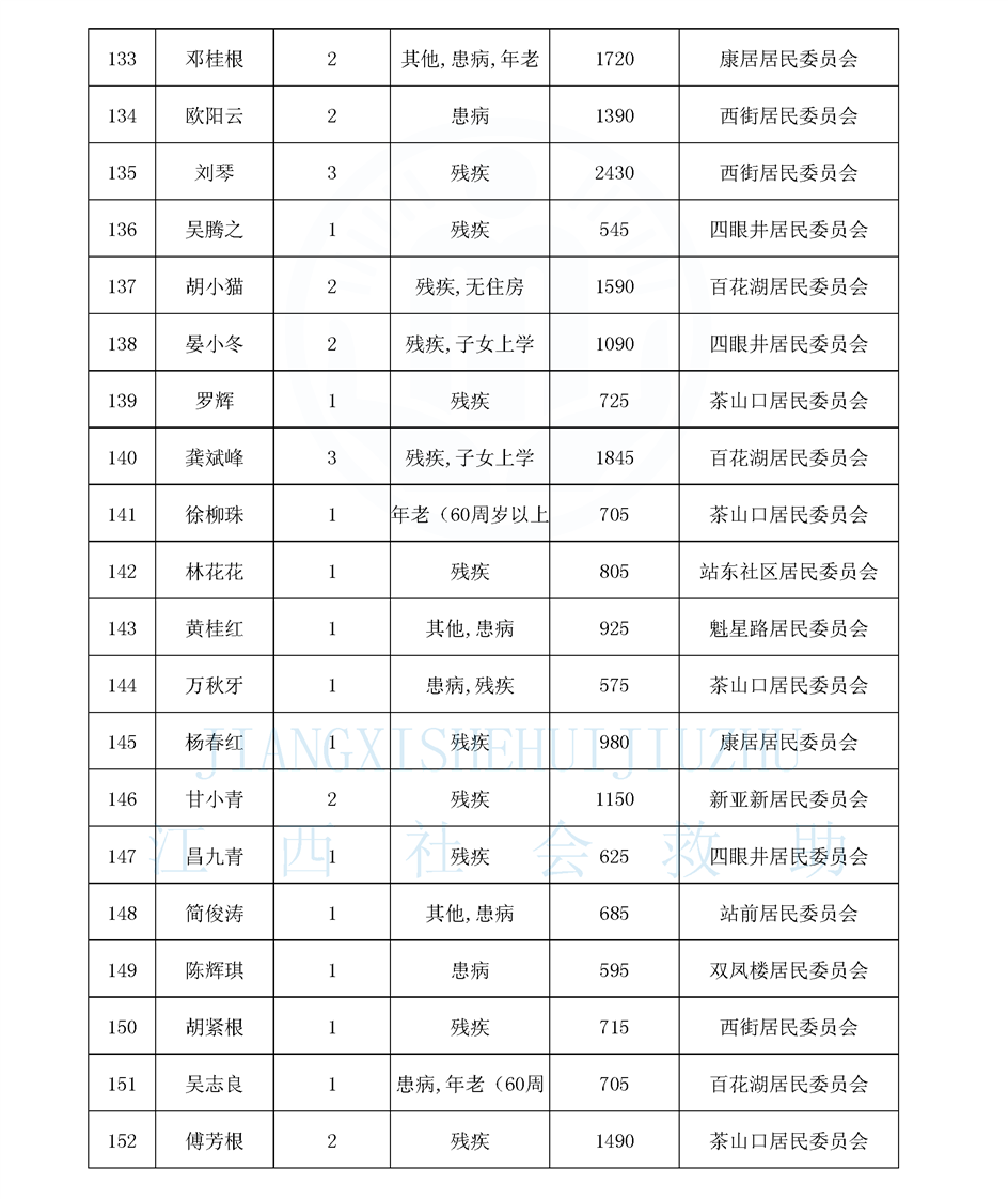 江西省最低生活保障對象公布名單(城南街道1月)