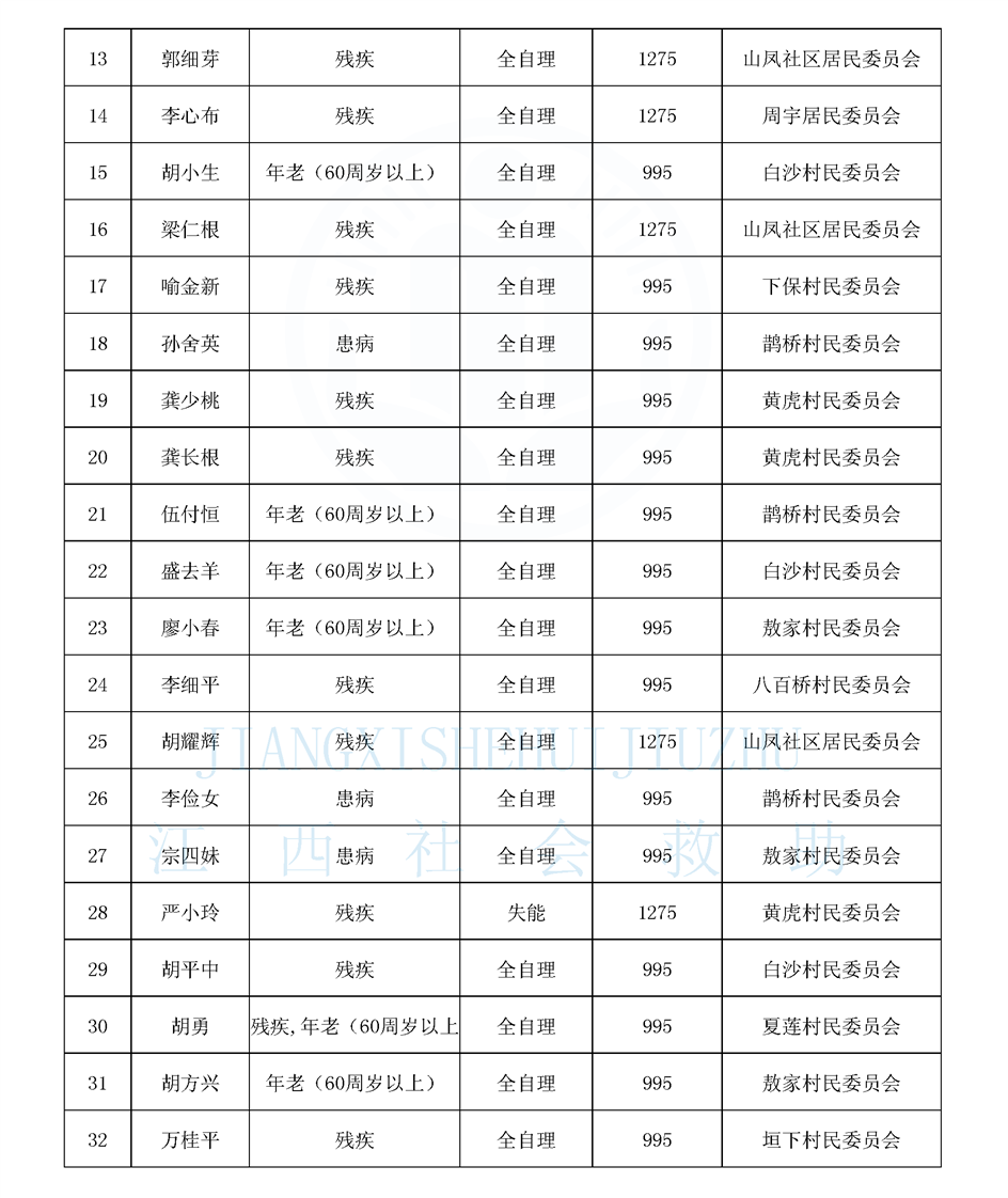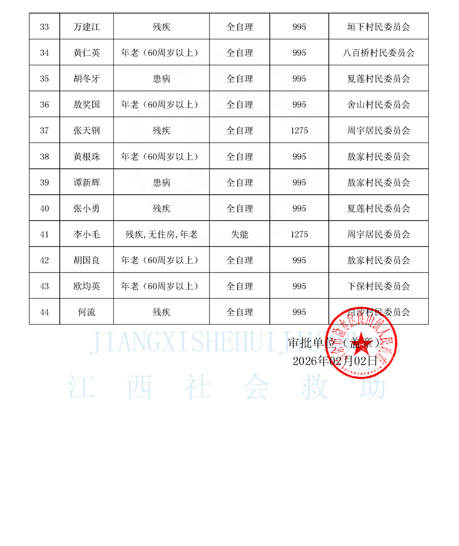 良山特困供養(yǎng)人員公布名單(2026年1月)