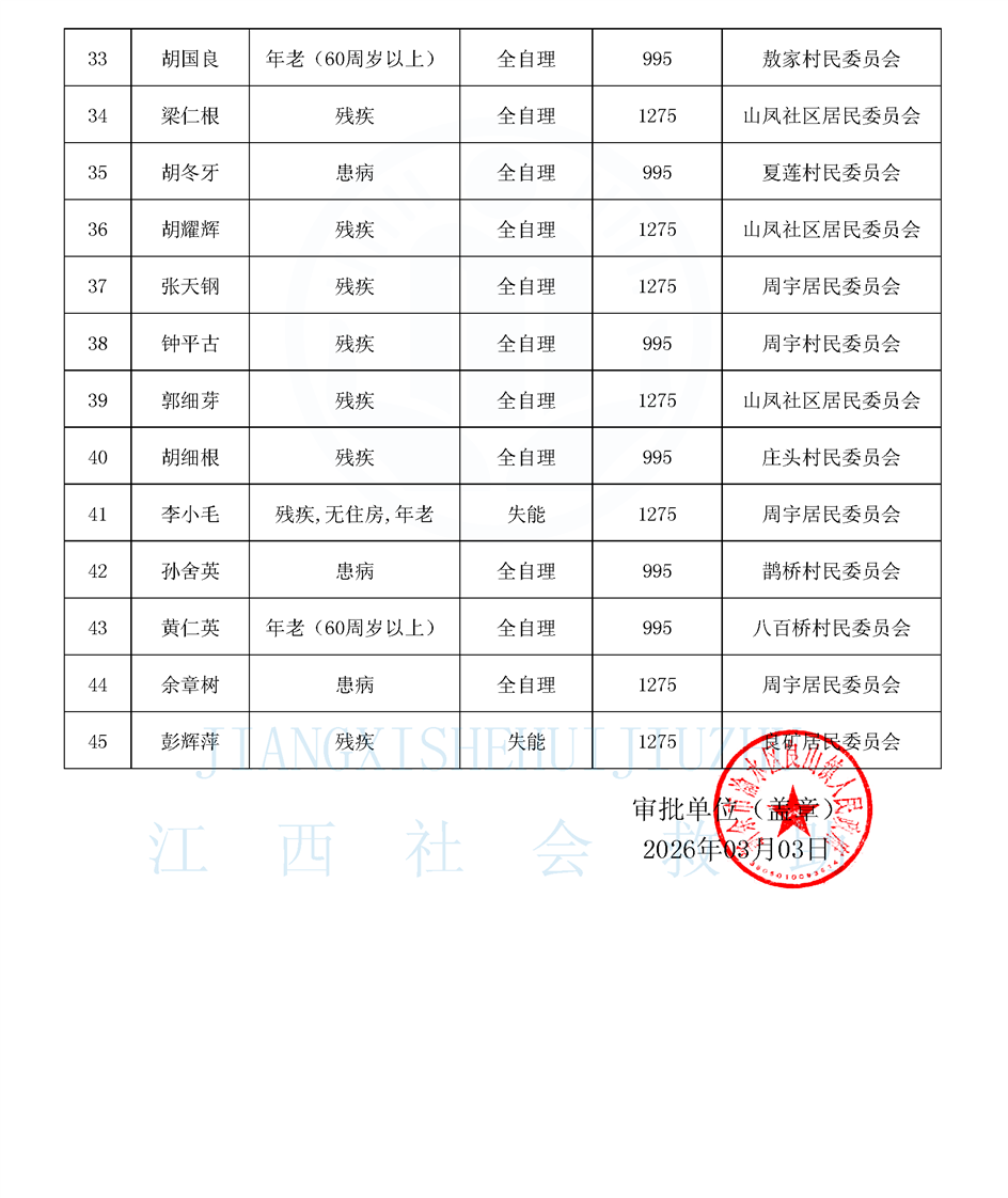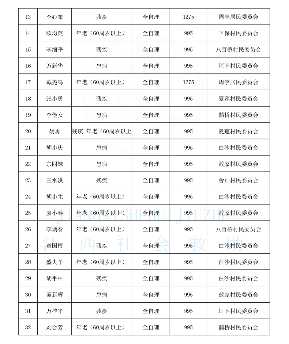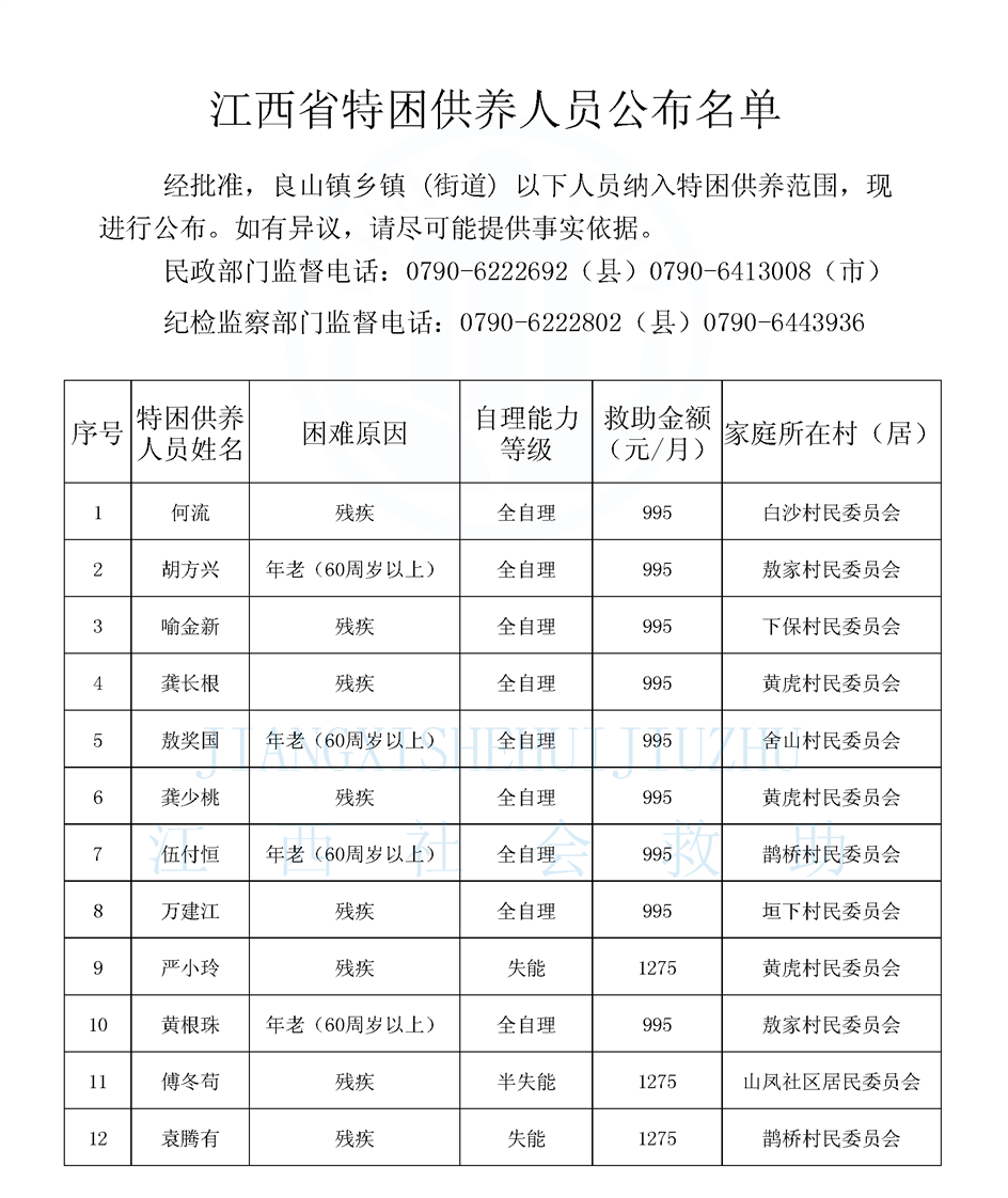 良山鎮特困供養人員公布名單(3月)