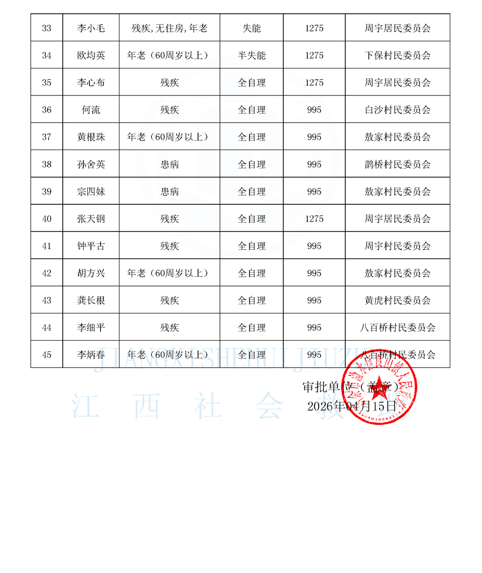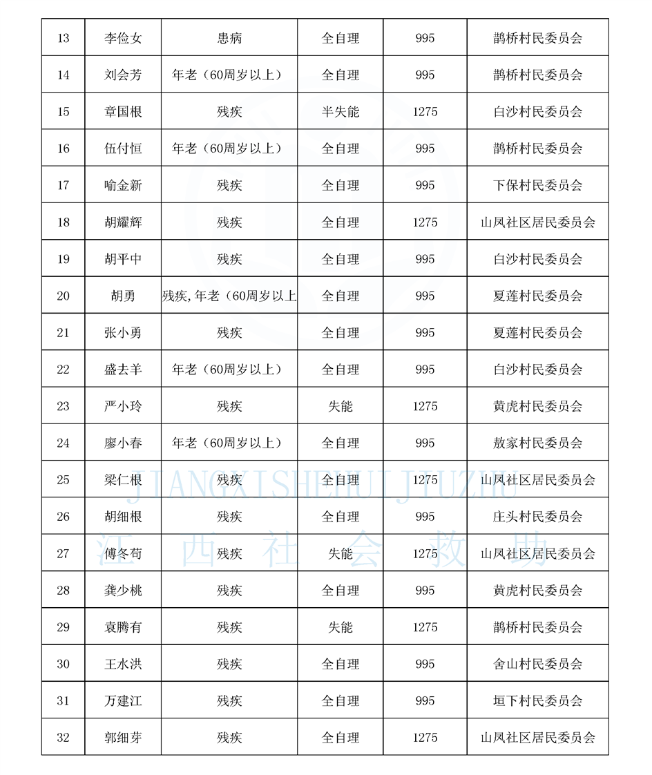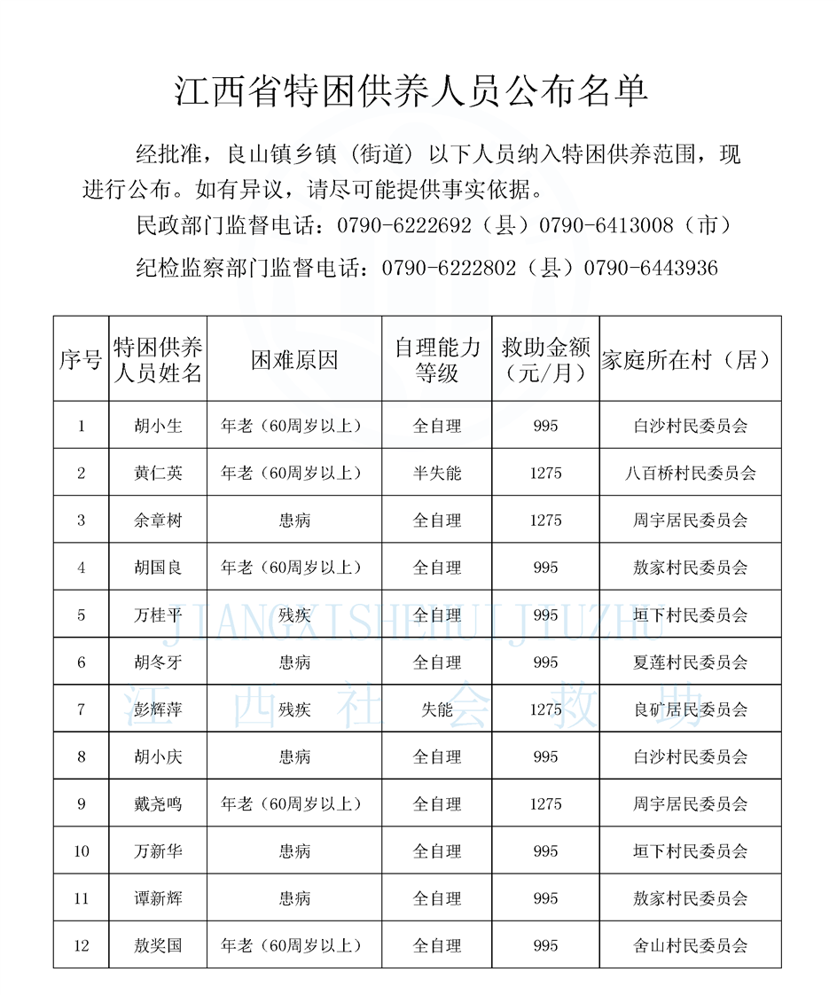 良山鎮(zhèn)特困供養(yǎng)人員公布名單(4月)