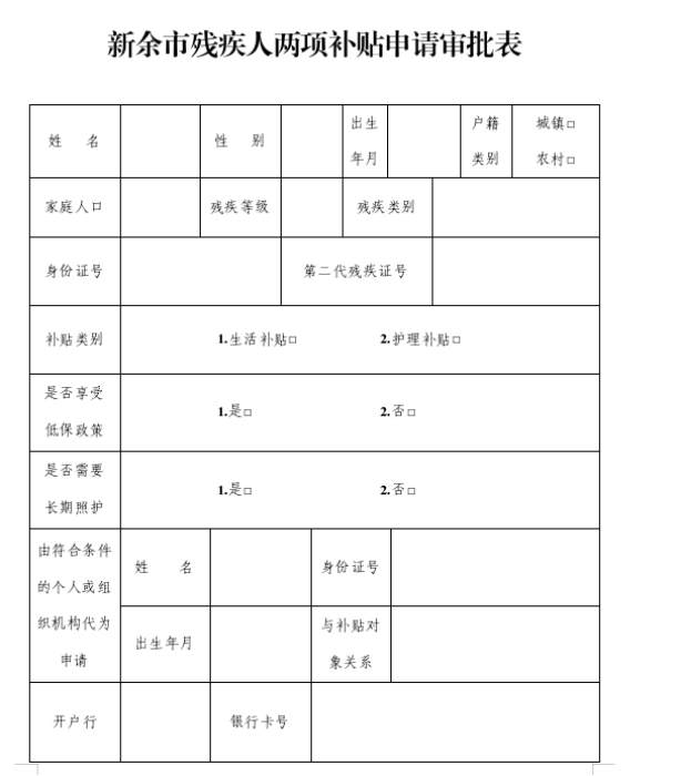 1.《江西省殘疾人兩項補貼申請審批表》;
