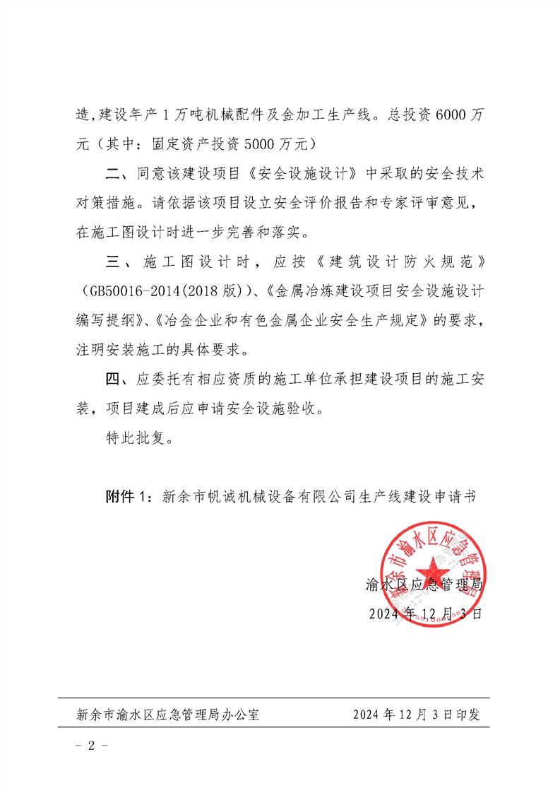 關于新余精誠精密機械有限公司生產線技術提升改造項目安全設施設計審查的批復