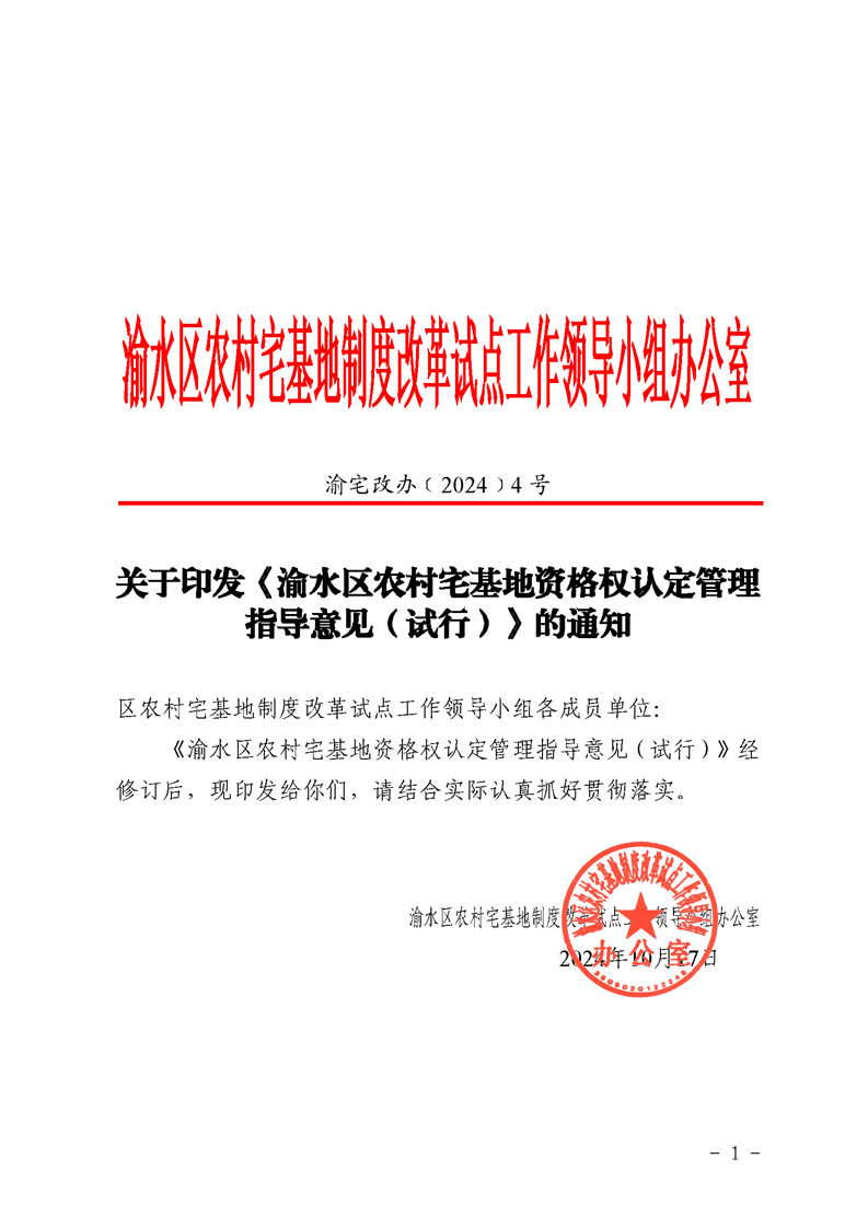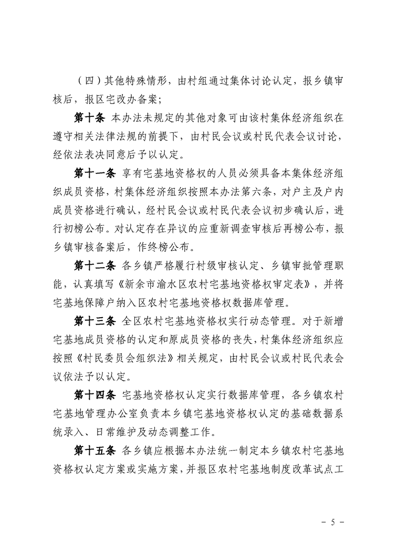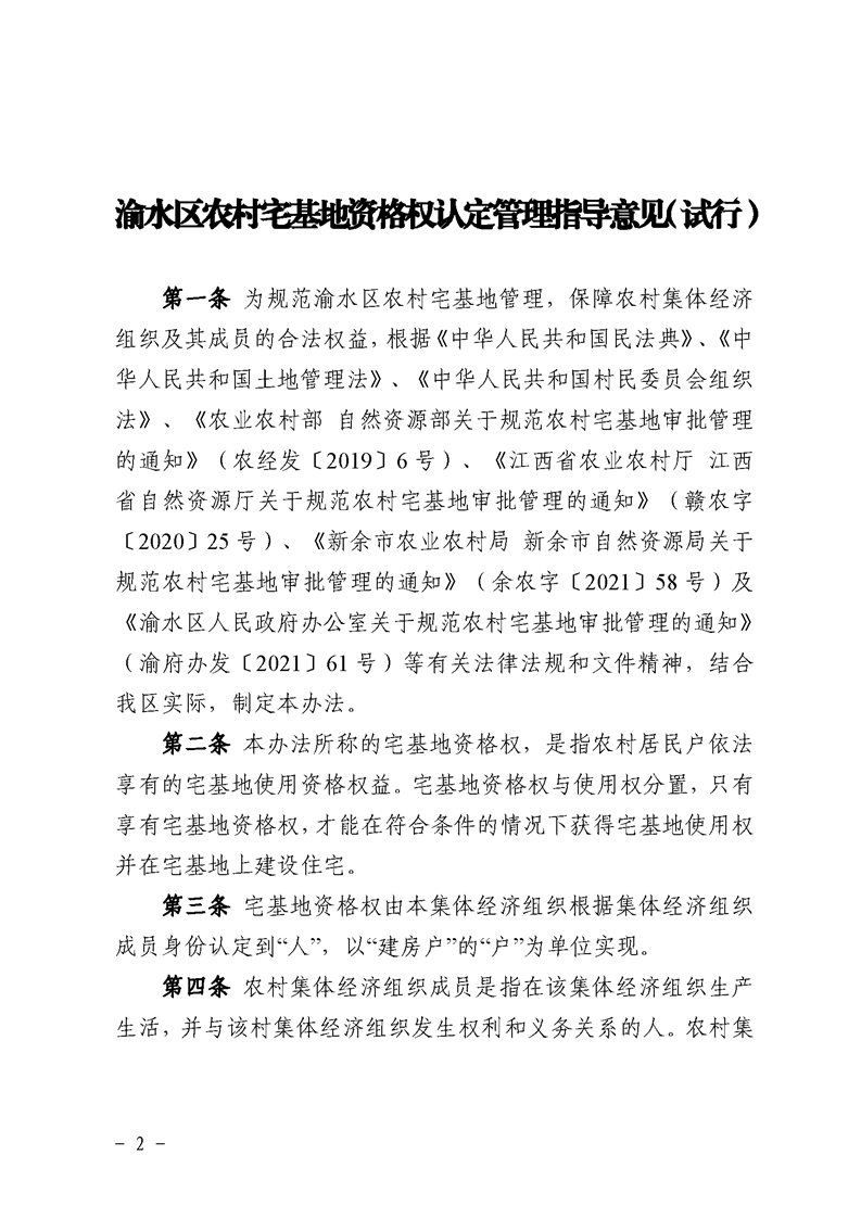 渝水區(qū)農(nóng)村宅基地資格認定管理指導(dǎo)意見