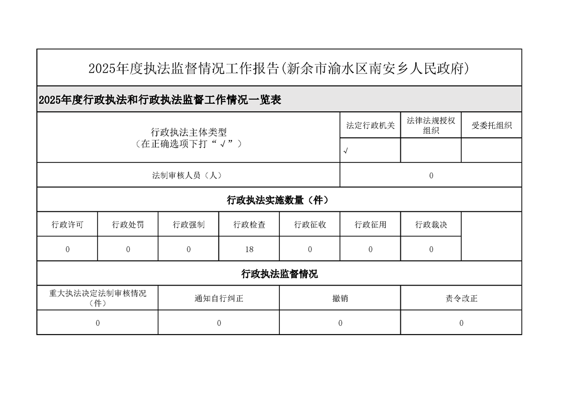 南安鄉2025年度執法監督情況工作報告