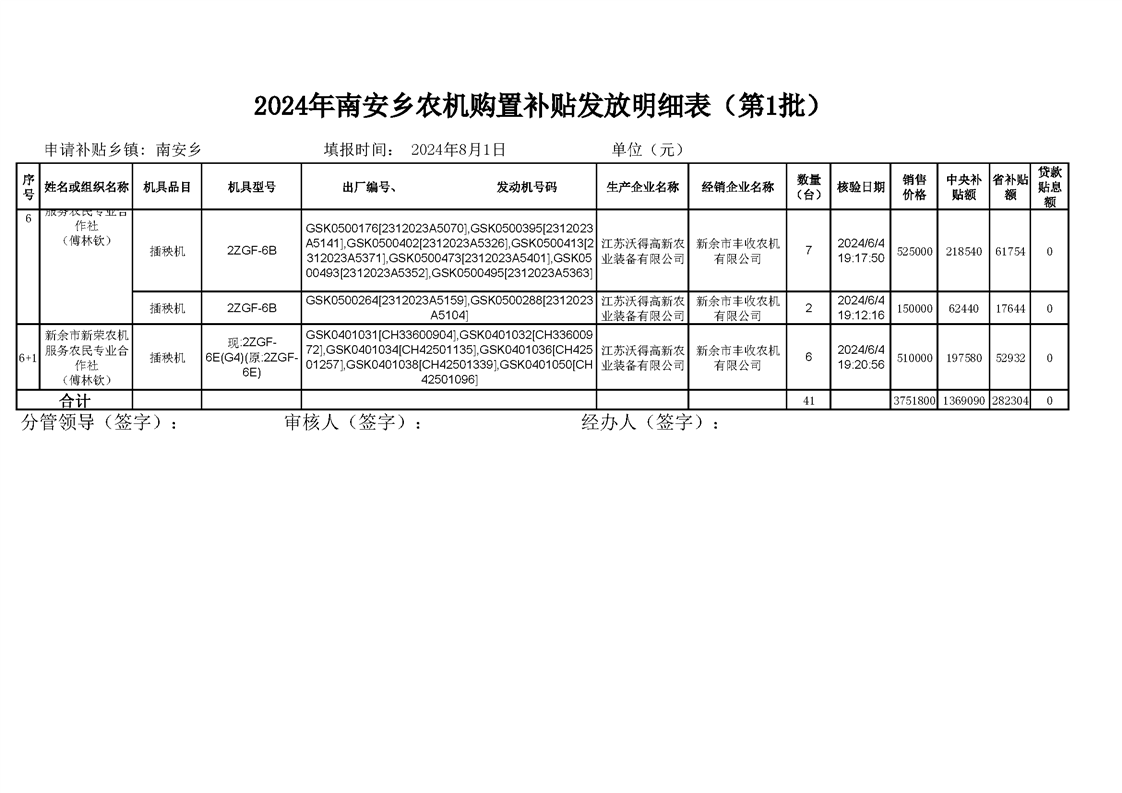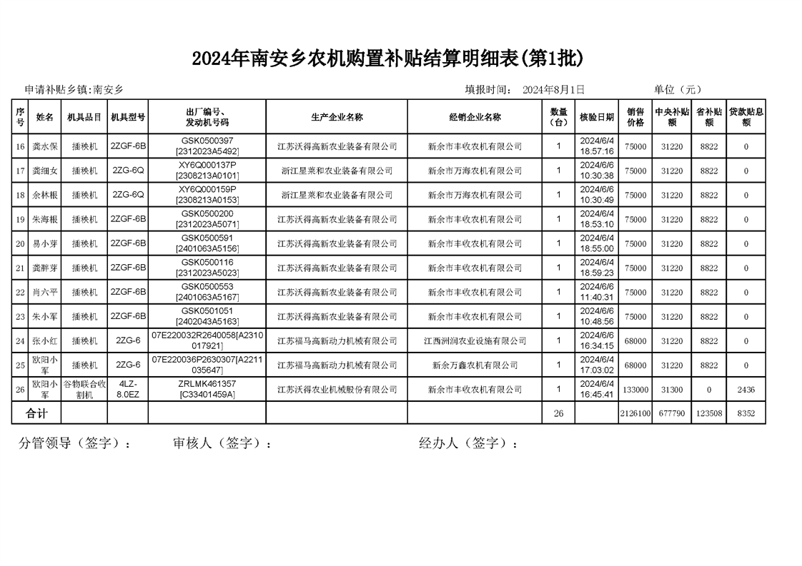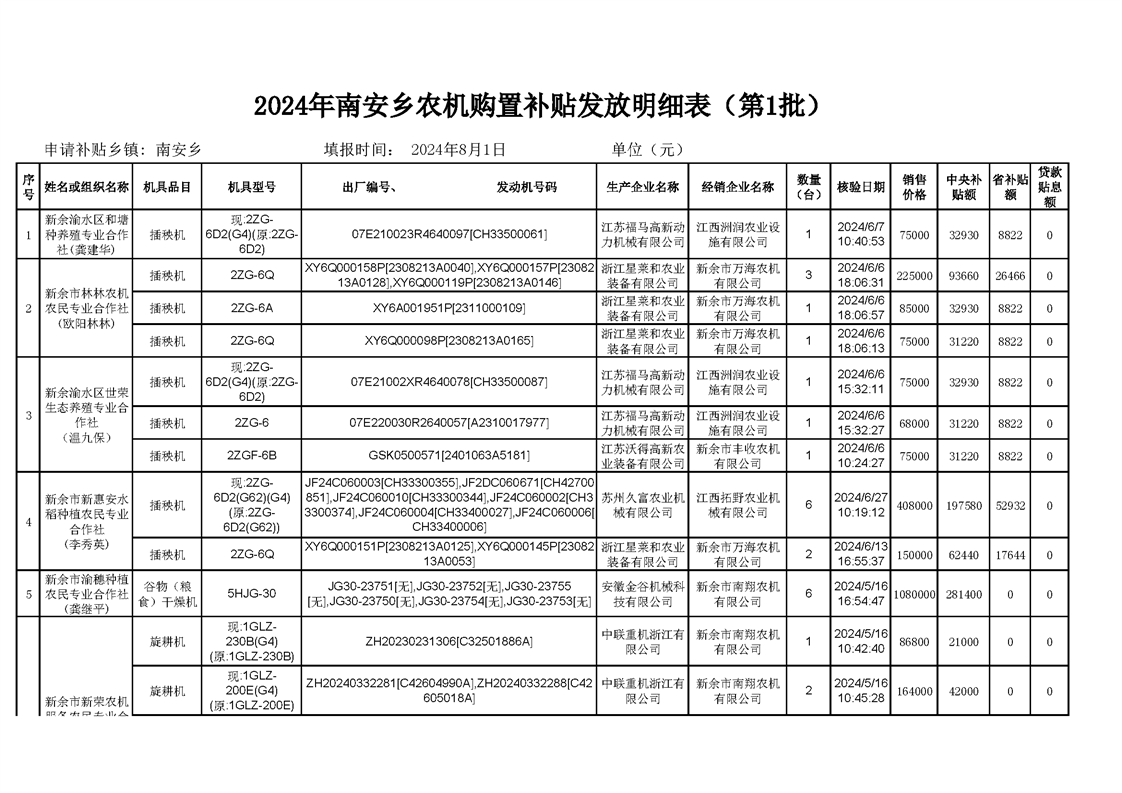 2024年南安鄉農機購置補貼結算明細表(第1批)