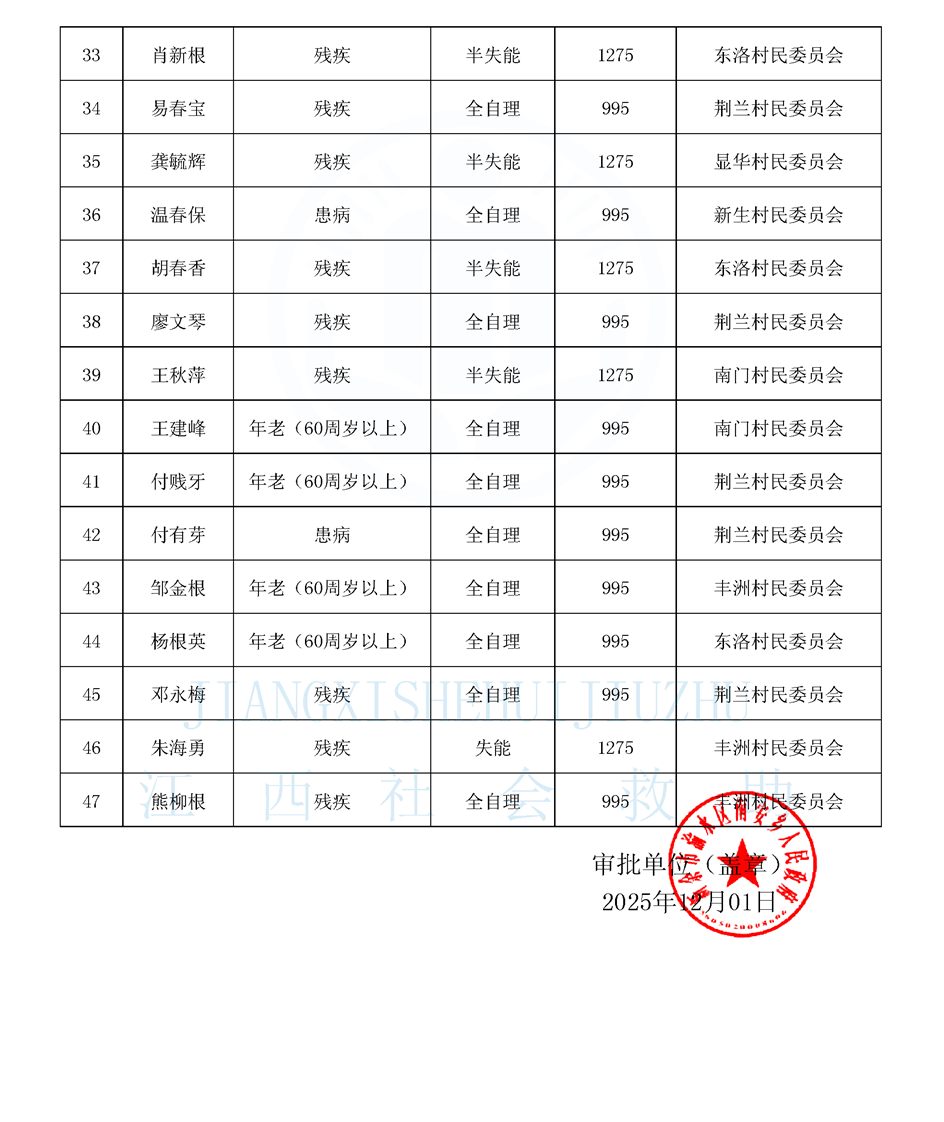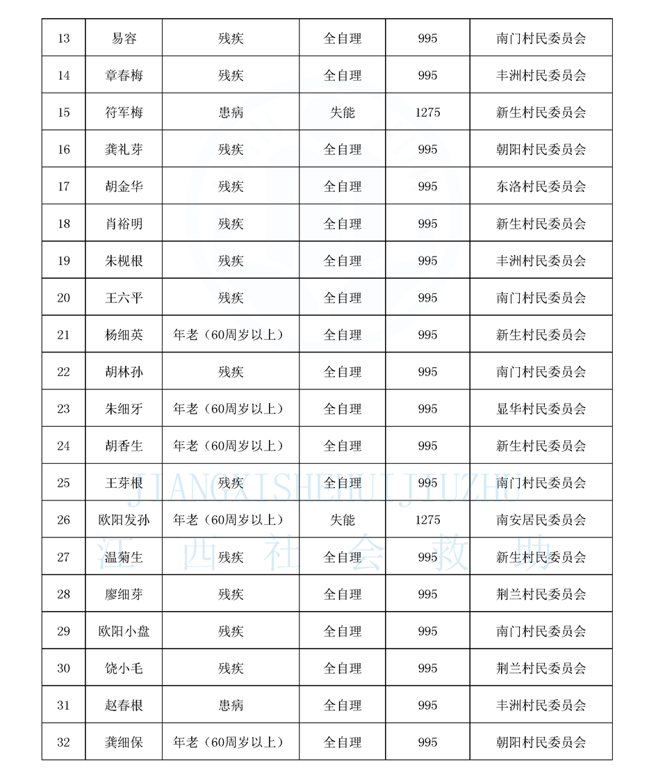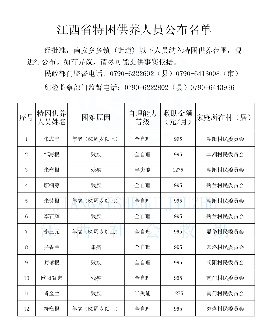 南安鄉(xiāng)12月農(nóng)村特困長期公布名單
