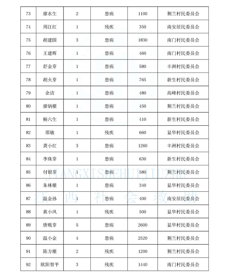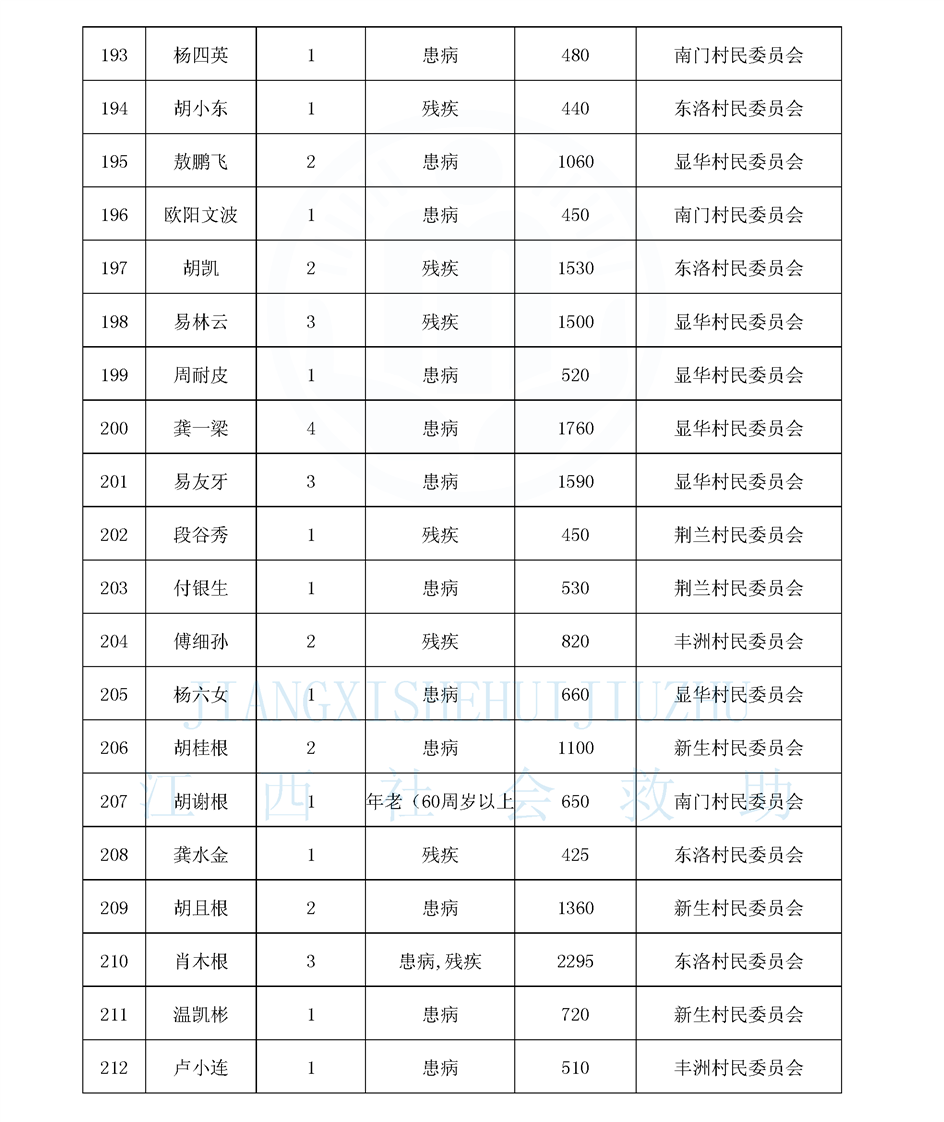 南安鄉(xiāng)12月農(nóng)村低保長(zhǎng)期公布名單
