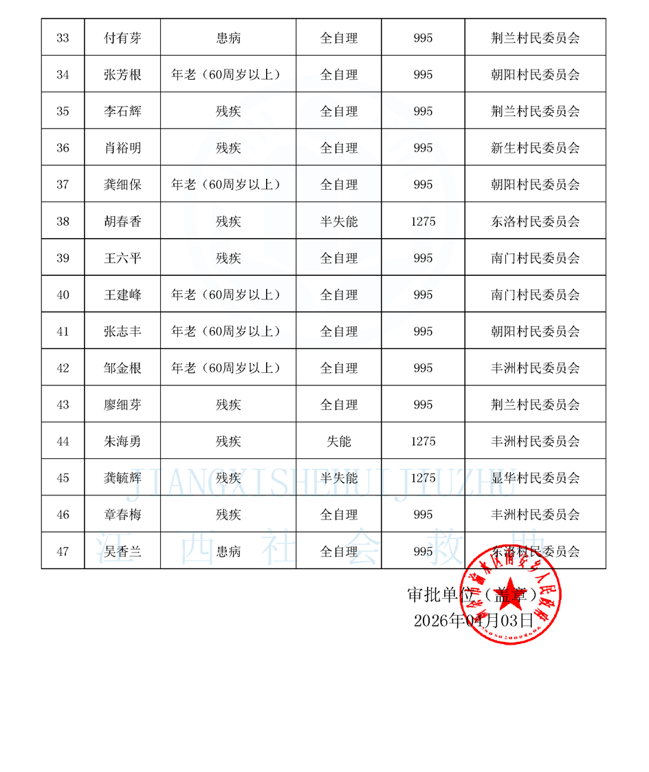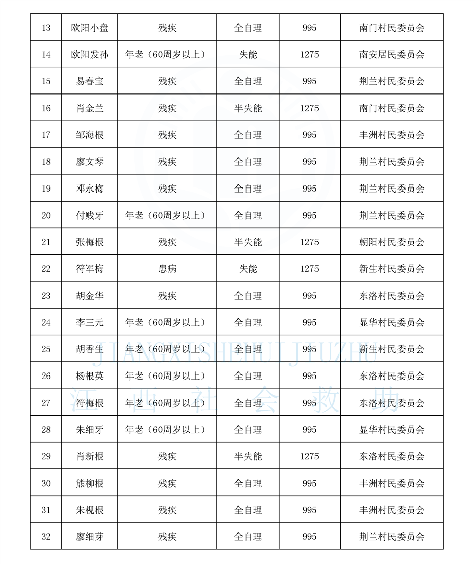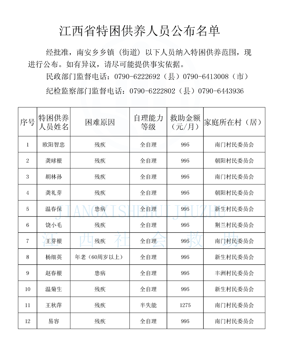 南安4月農村特困長期公布名單