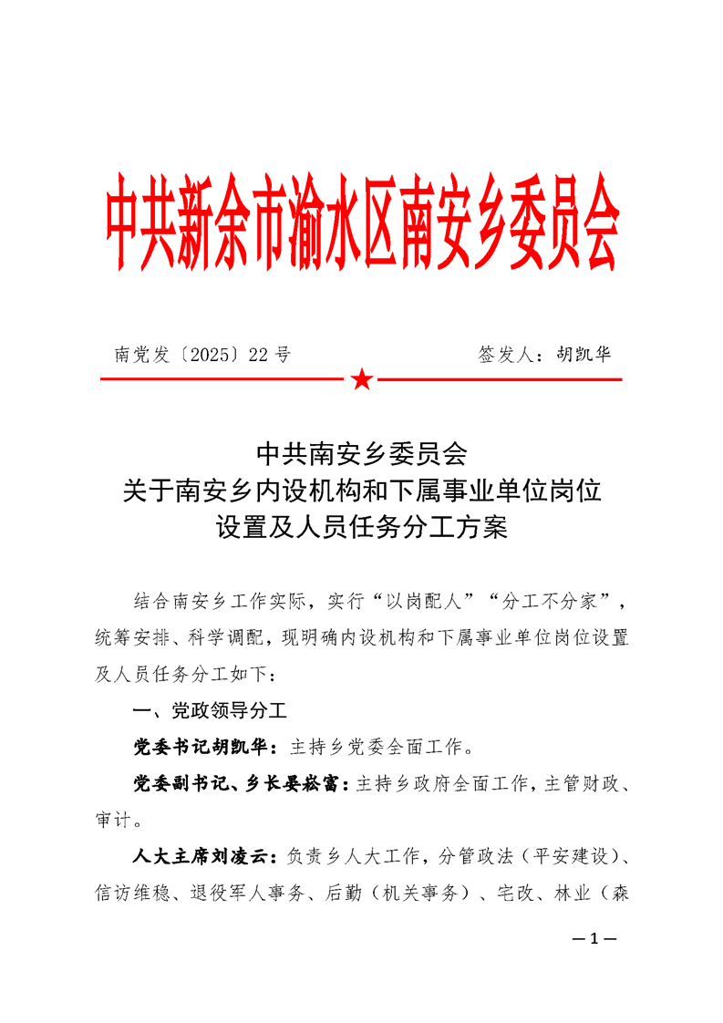 22號關于南安鄉(xiāng)內設機構和下屬事業(yè)單位崗位設置及人員任務分工方案
