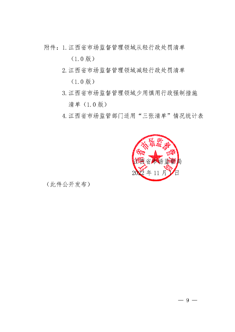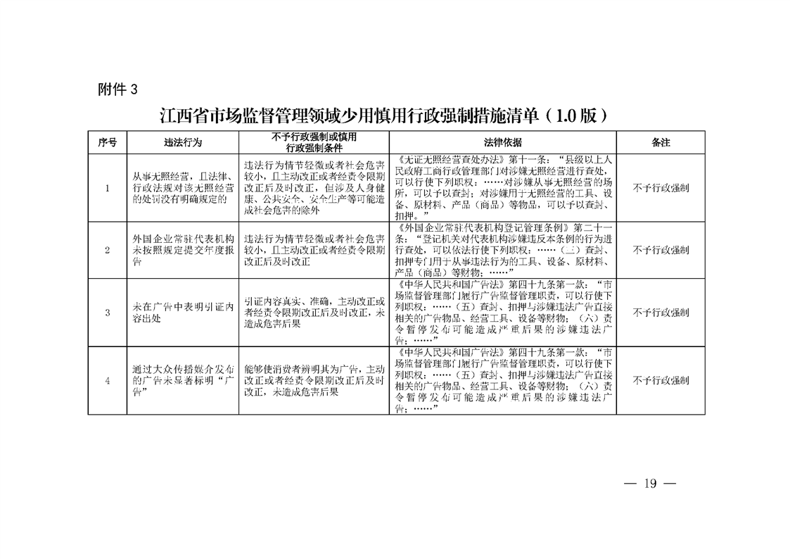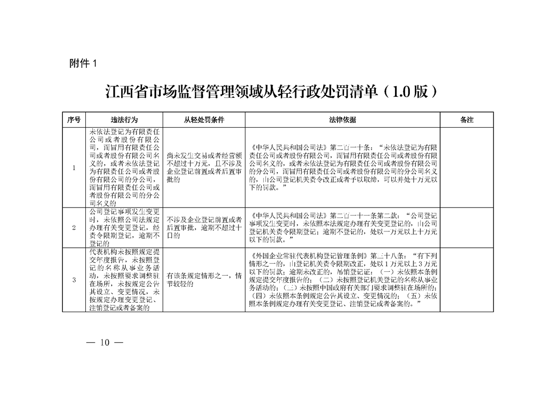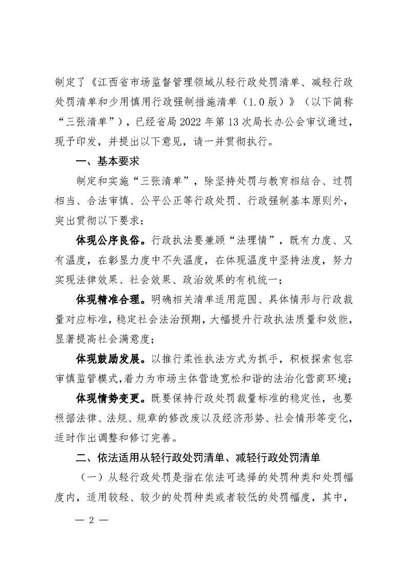 現(xiàn)將《江西省市場監(jiān)督管理領(lǐng)域從輕行政處罰清單、減輕行政處罰清單和少用慎用行政強(qiáng)制措施清單(1.0 版)》印發(fā)給你們,請遵照執(zhí)行。