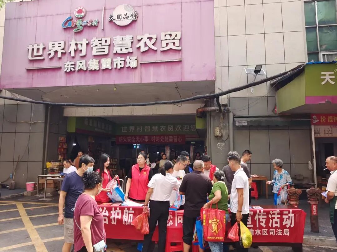 在城南東風農貿市場開展的普法活動同樣人氣十足。作為居民日常采購、商戶集中經營的場所,這里人流密集,買賣合同糾紛、消費者權益保護、食品安全、攤位租賃等問題與經營戶、消費者的切身利益息息相關。此次宣傳便緊扣“經營+消費”兩大核心,把法律知識融入濃濃的煙火氣中。