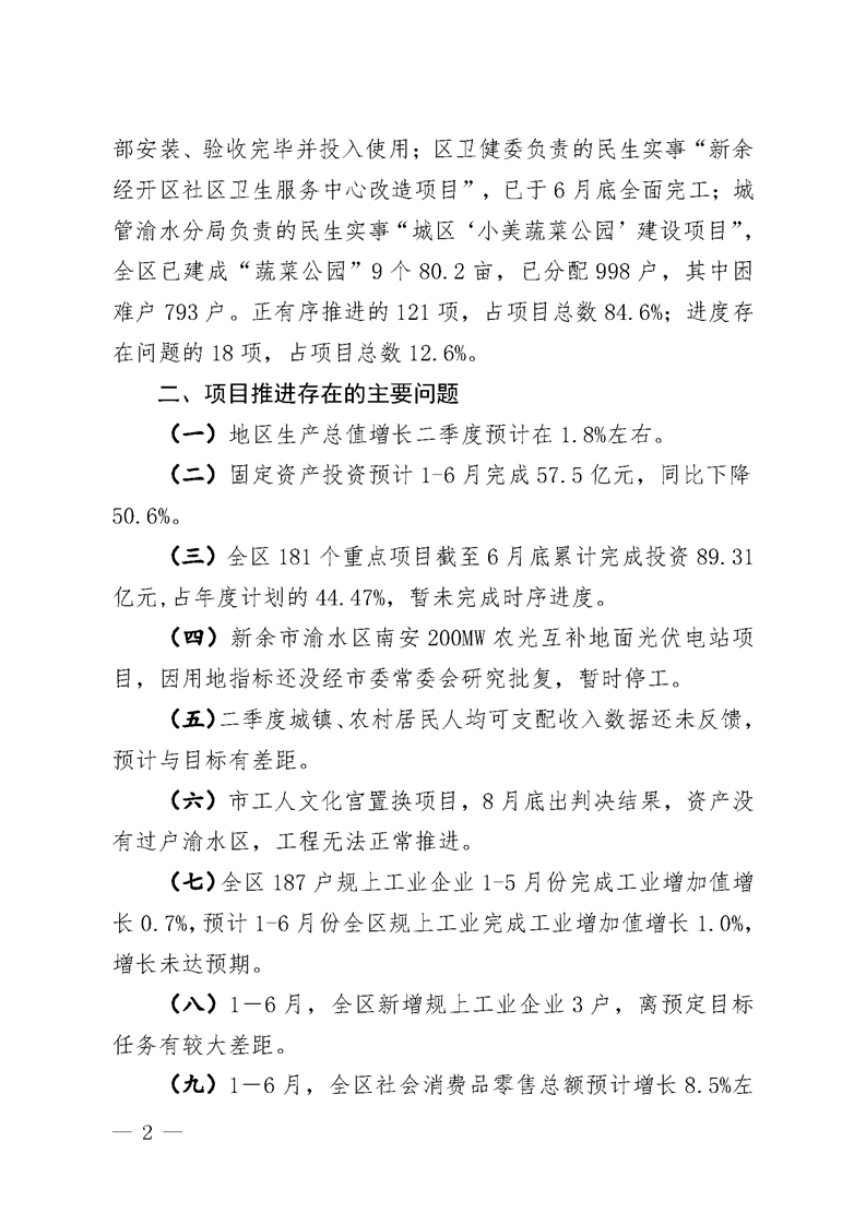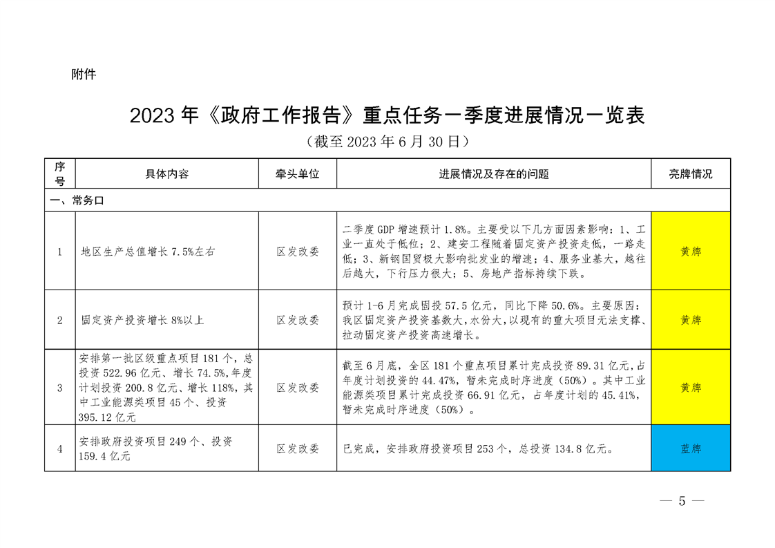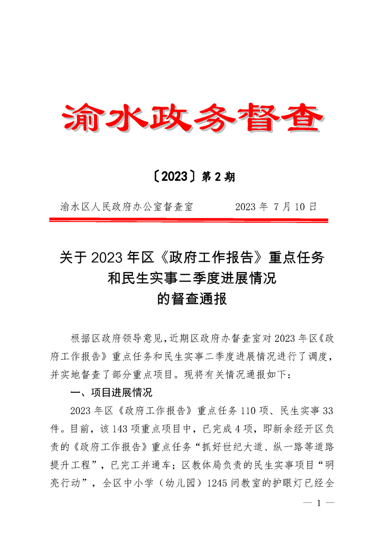 關于2023年區《政府工作報告》重點任務和民生實事二季度進展情況的督查通報