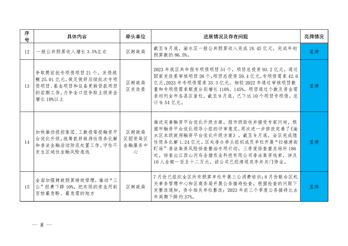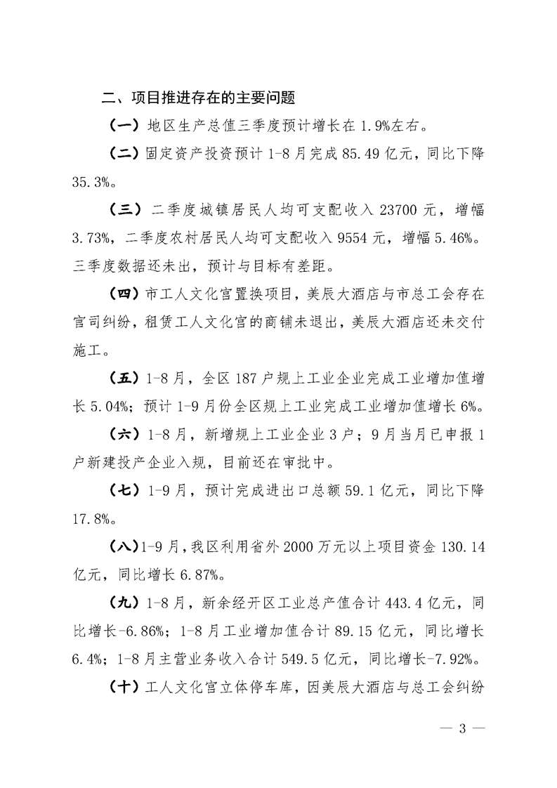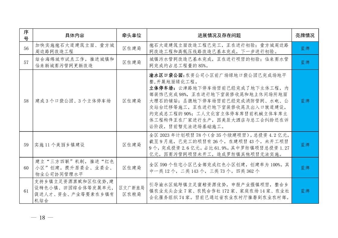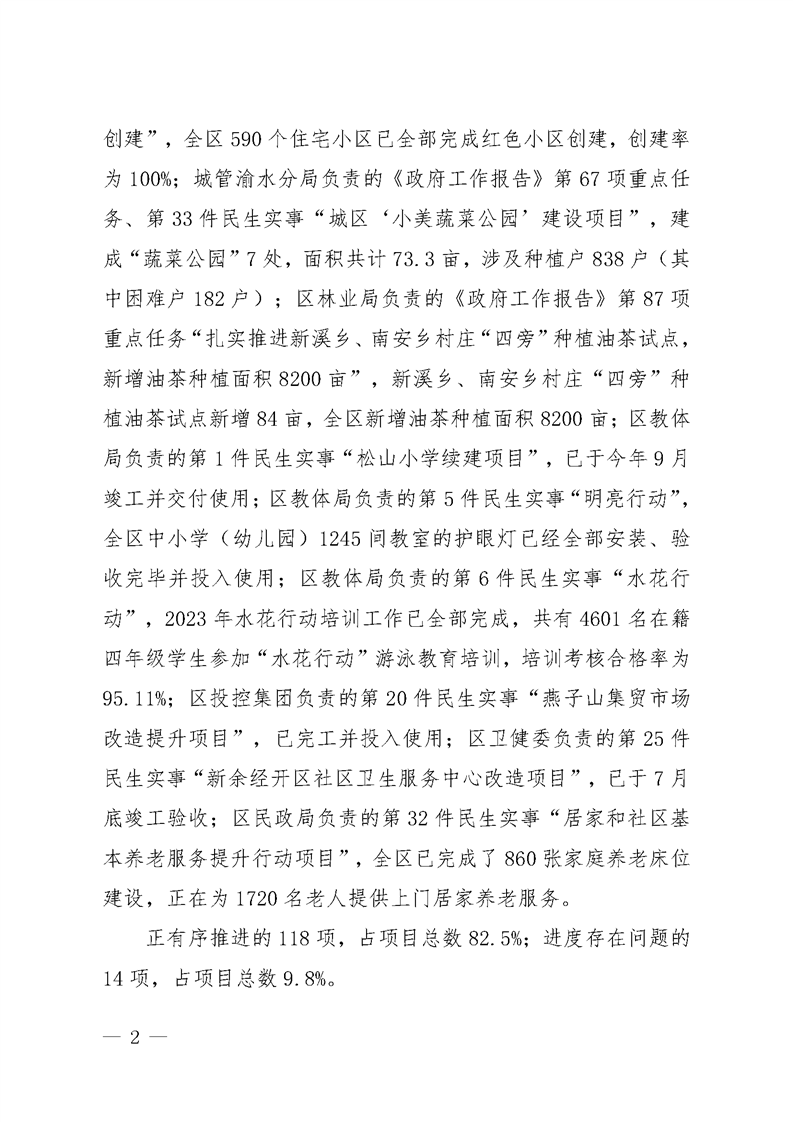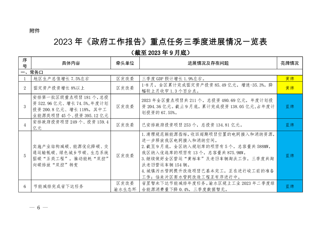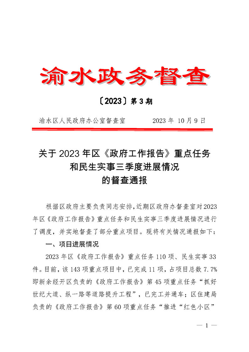 關于2023年區《政府工作報告》重點任務和民生實事三季度進展情況的督查通報