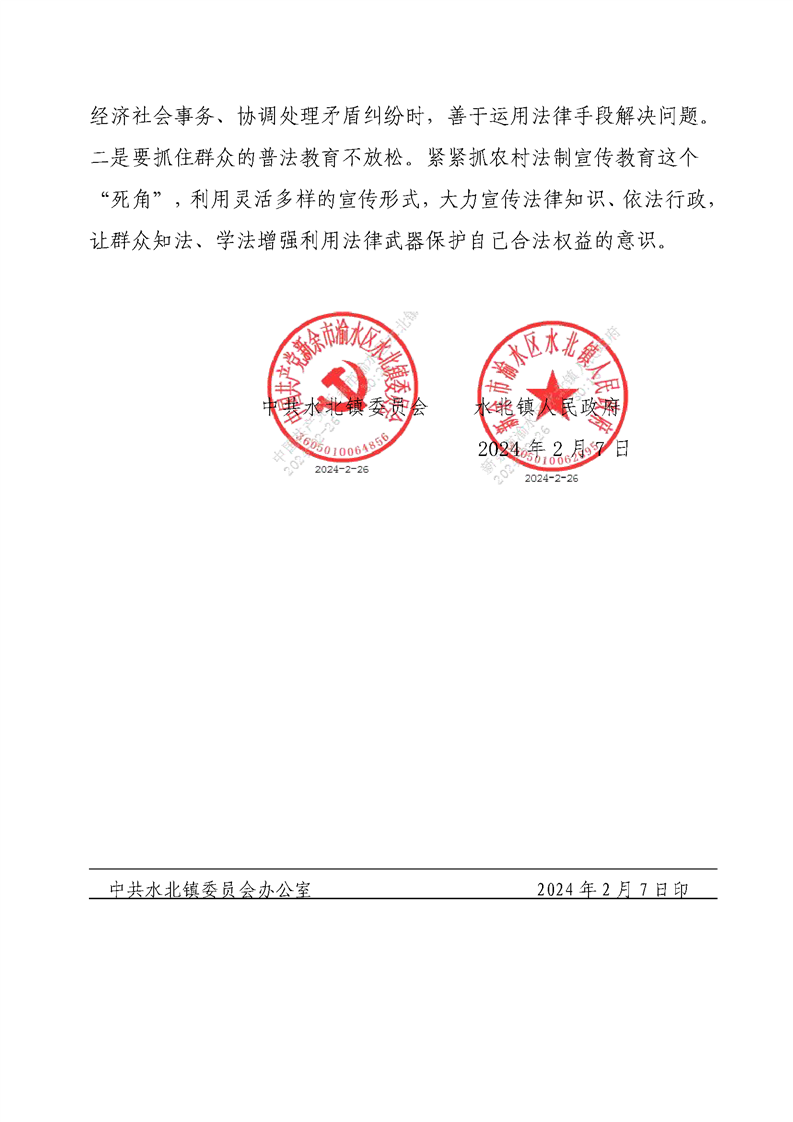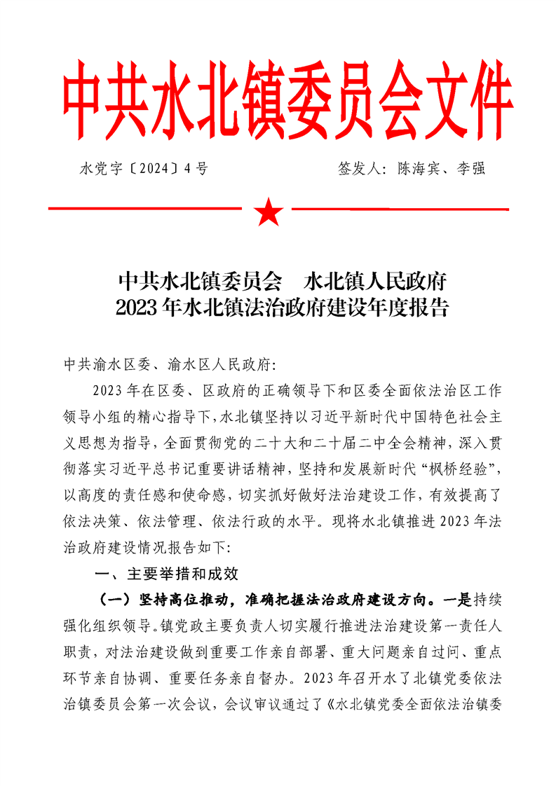 水黨字4號2023年水北鎮(zhèn)法治政府建設年度報告