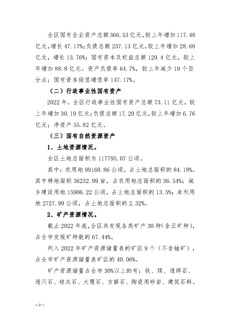 江西省新余市渝水區(qū)2022年度國(guó)有資產(chǎn)綜合報(bào)告