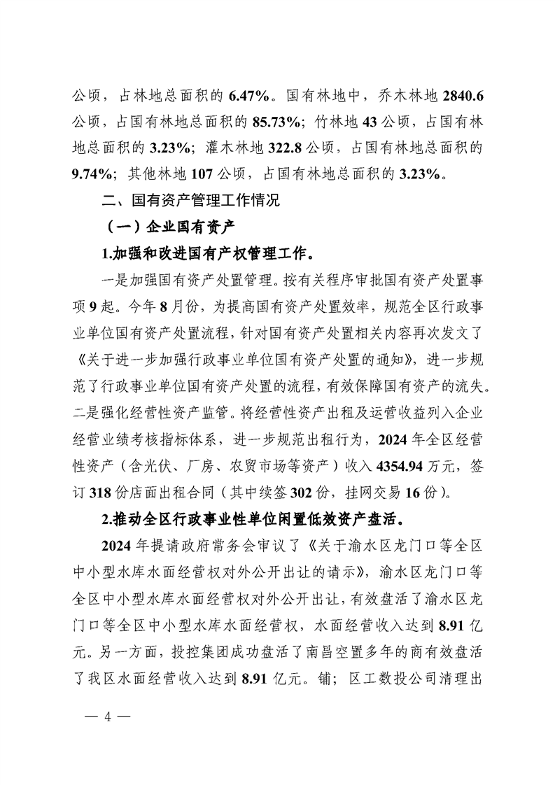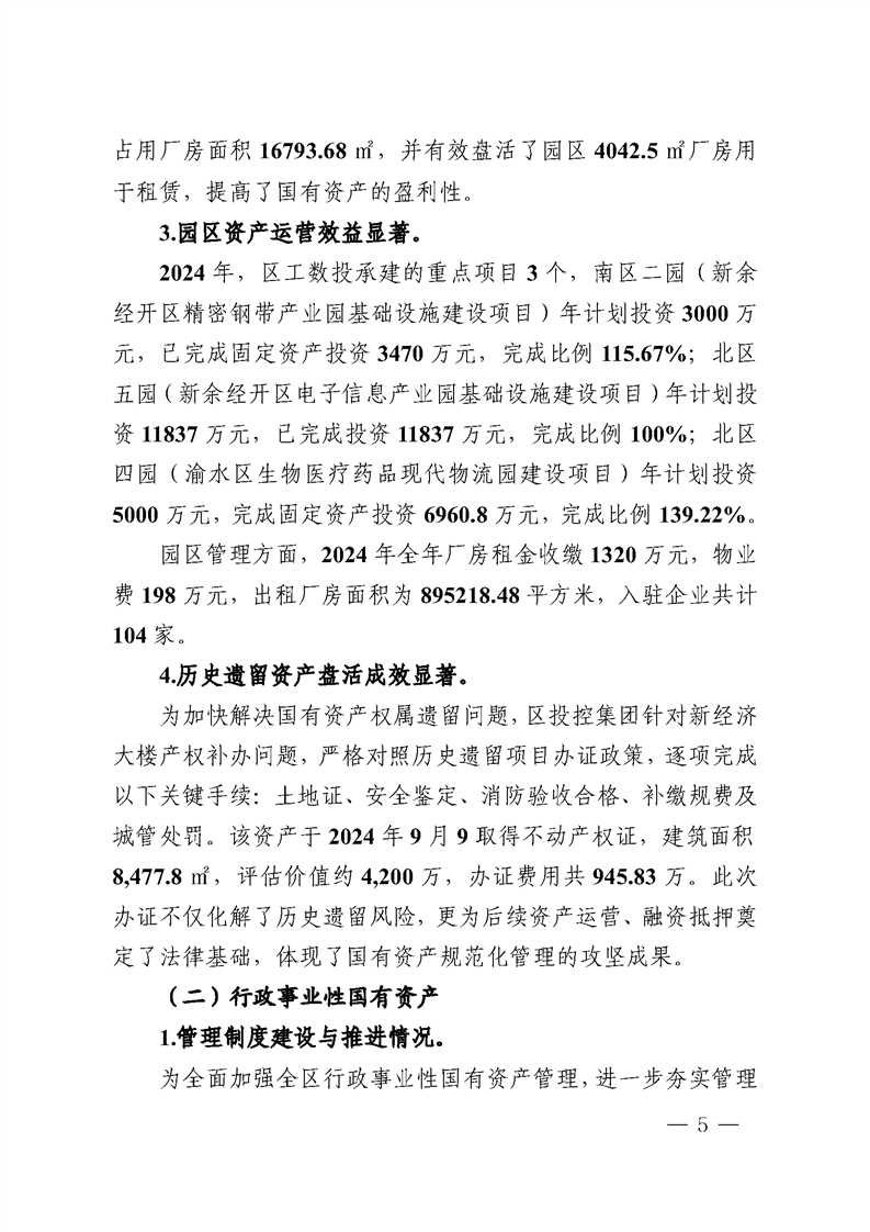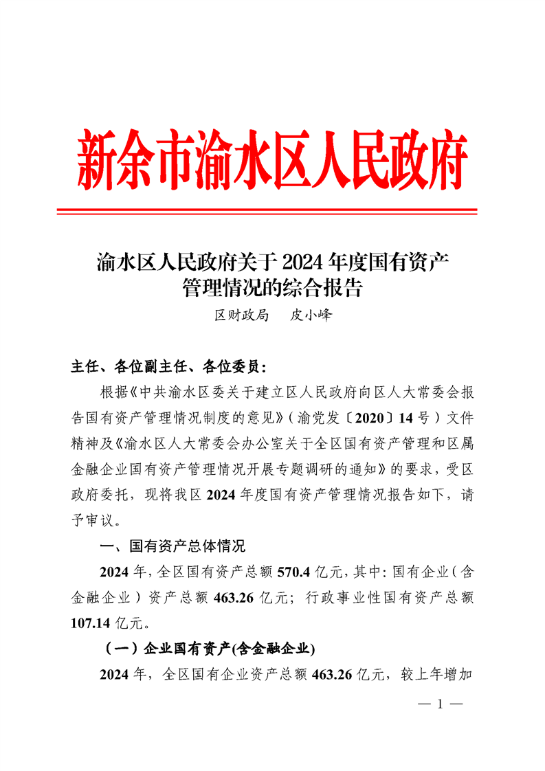 渝水區人民政府關于2024年度國有資產管理情況的綜合報告