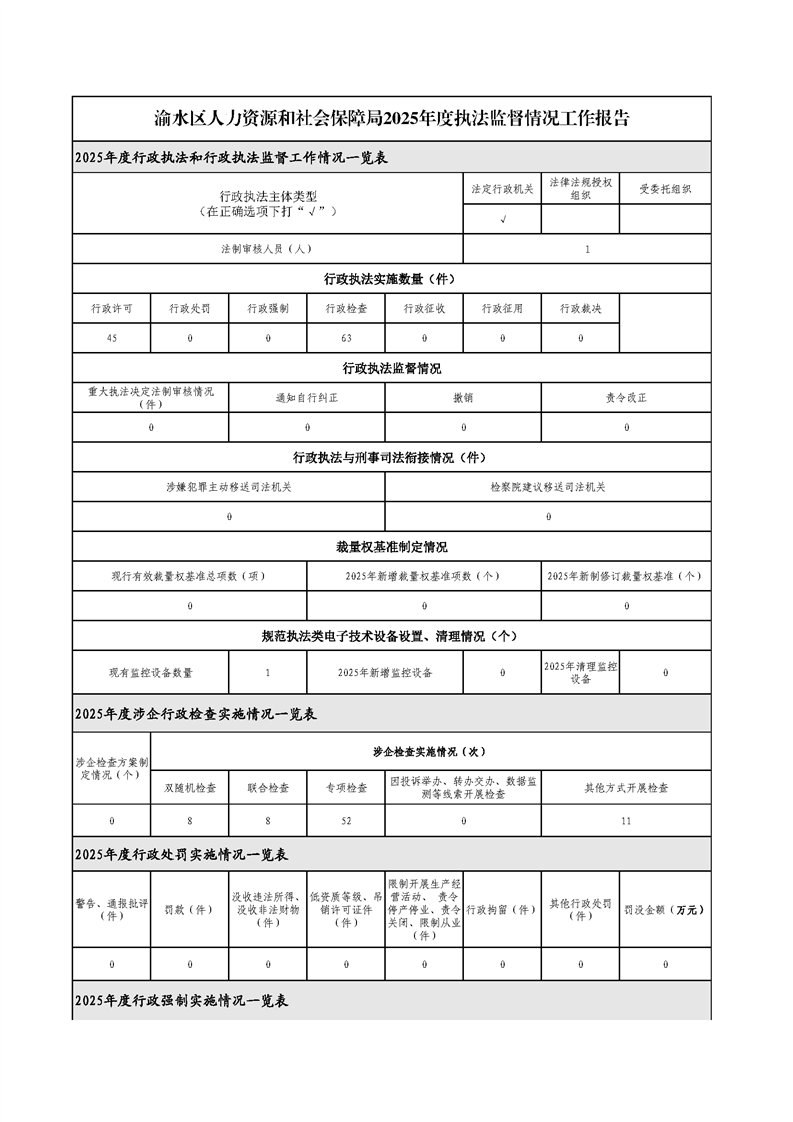 渝水區(qū)人力資源和社會保障局2025年度執(zhí)法監(jiān)督情況工作報告