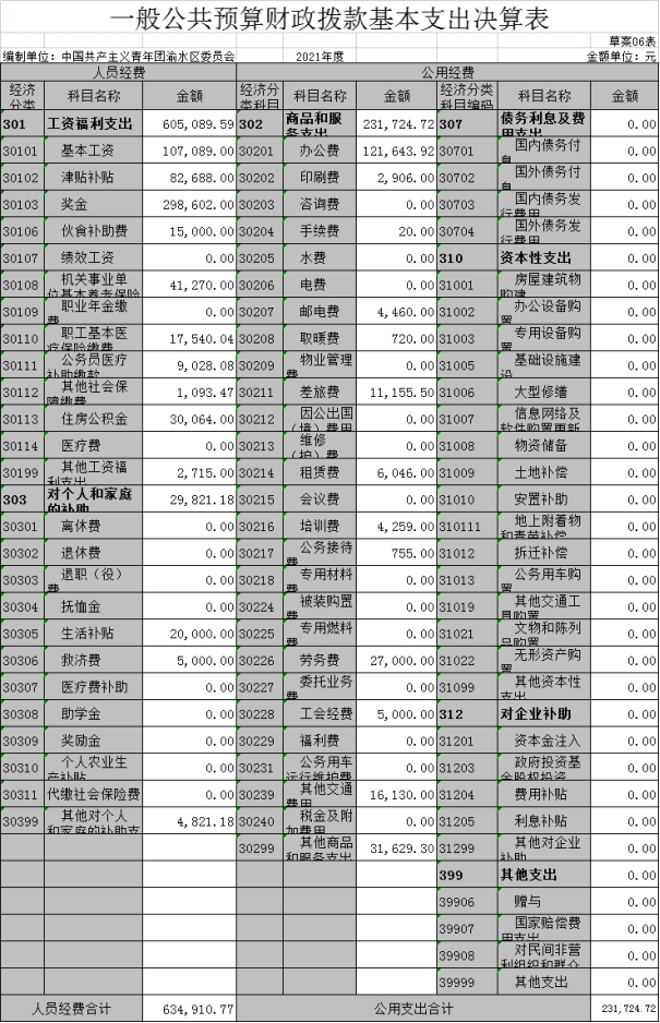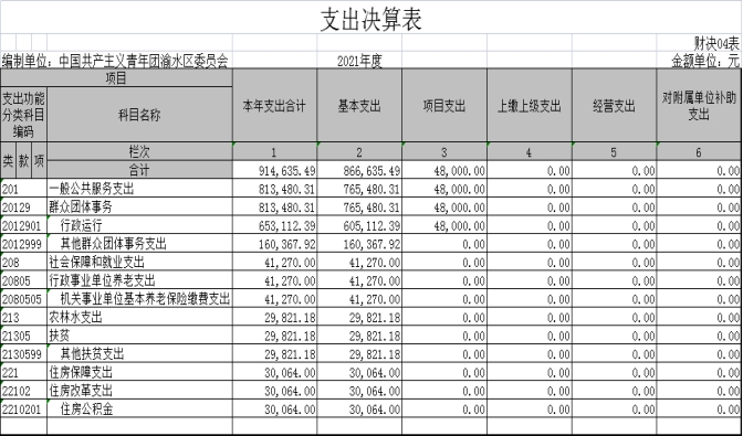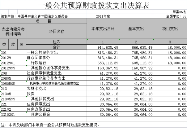 中國共產(chǎn)主義青年團渝水區(qū)委員會2021年度部門決算