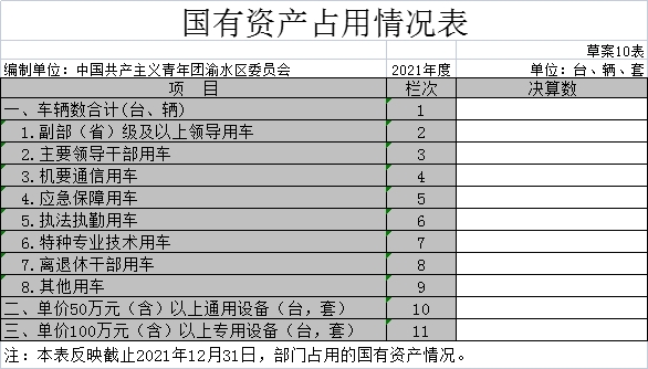 十、國有資產(chǎn)占用情況表