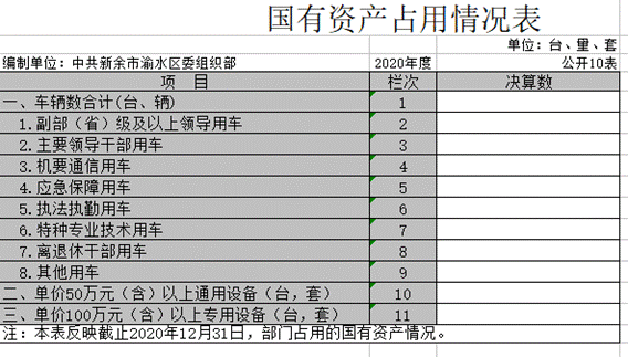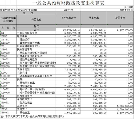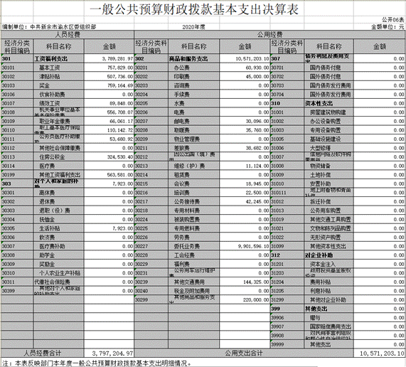 渝水區委組織部2020年度部門決算