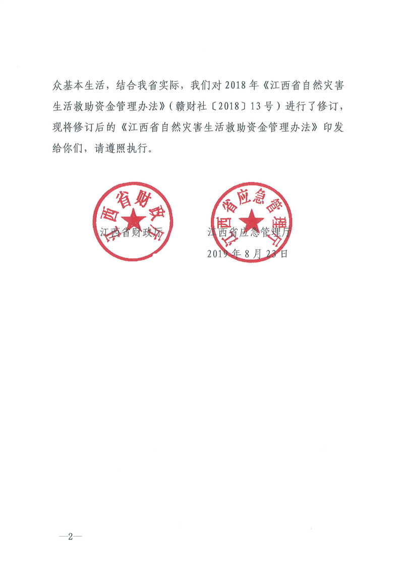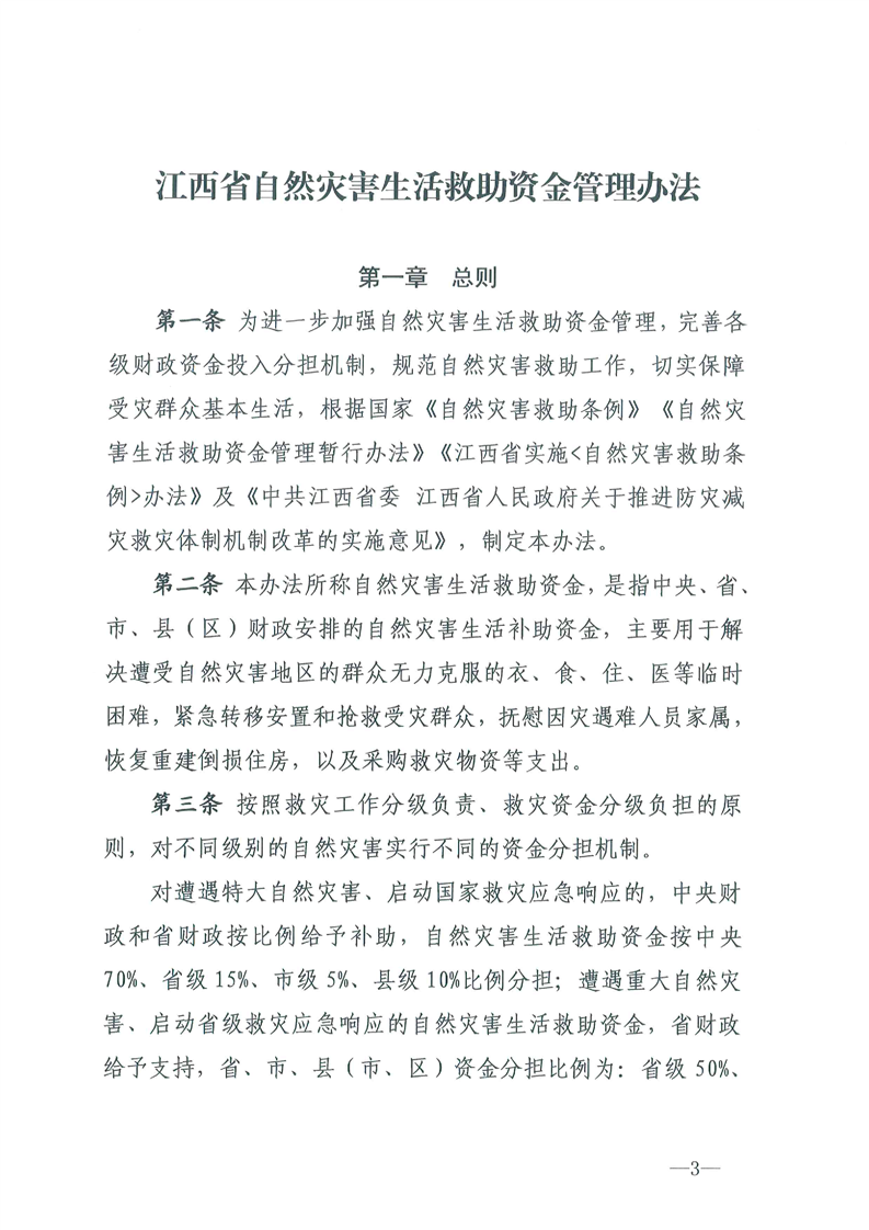 江西省自然災害救助資金管理辦法