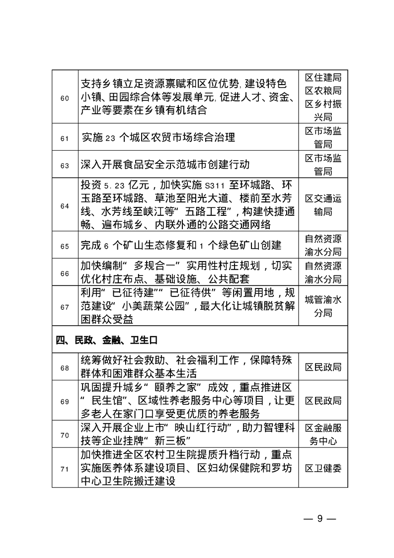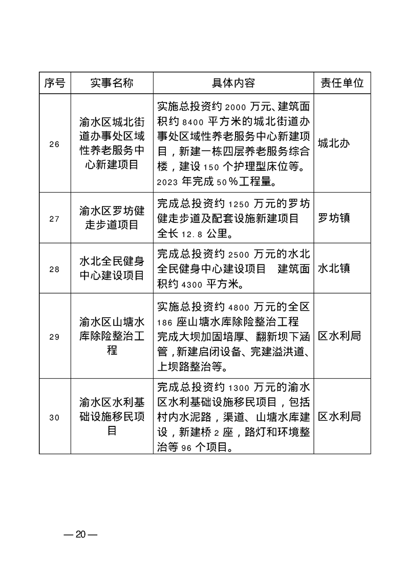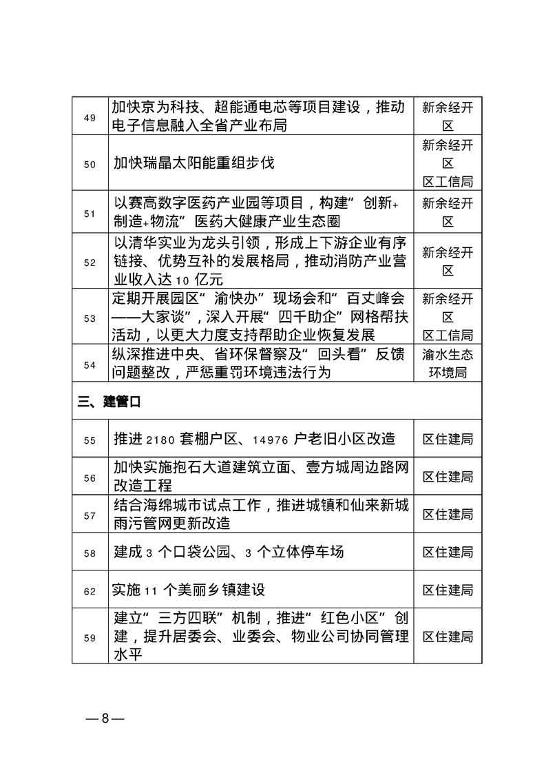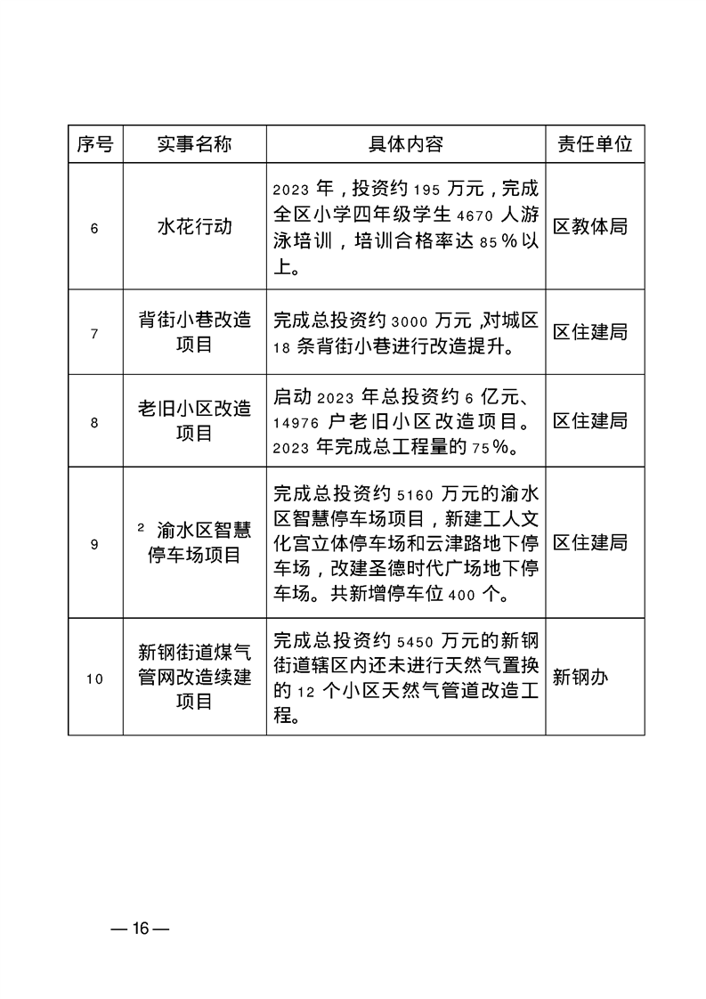 渝府辦字〔2023〕1號 渝水區人民政府辦公室關于印發2023年《政府工作報告》重點任務和民生實事責任分工的通知