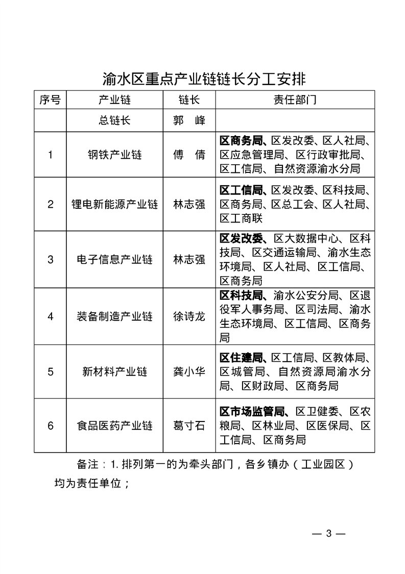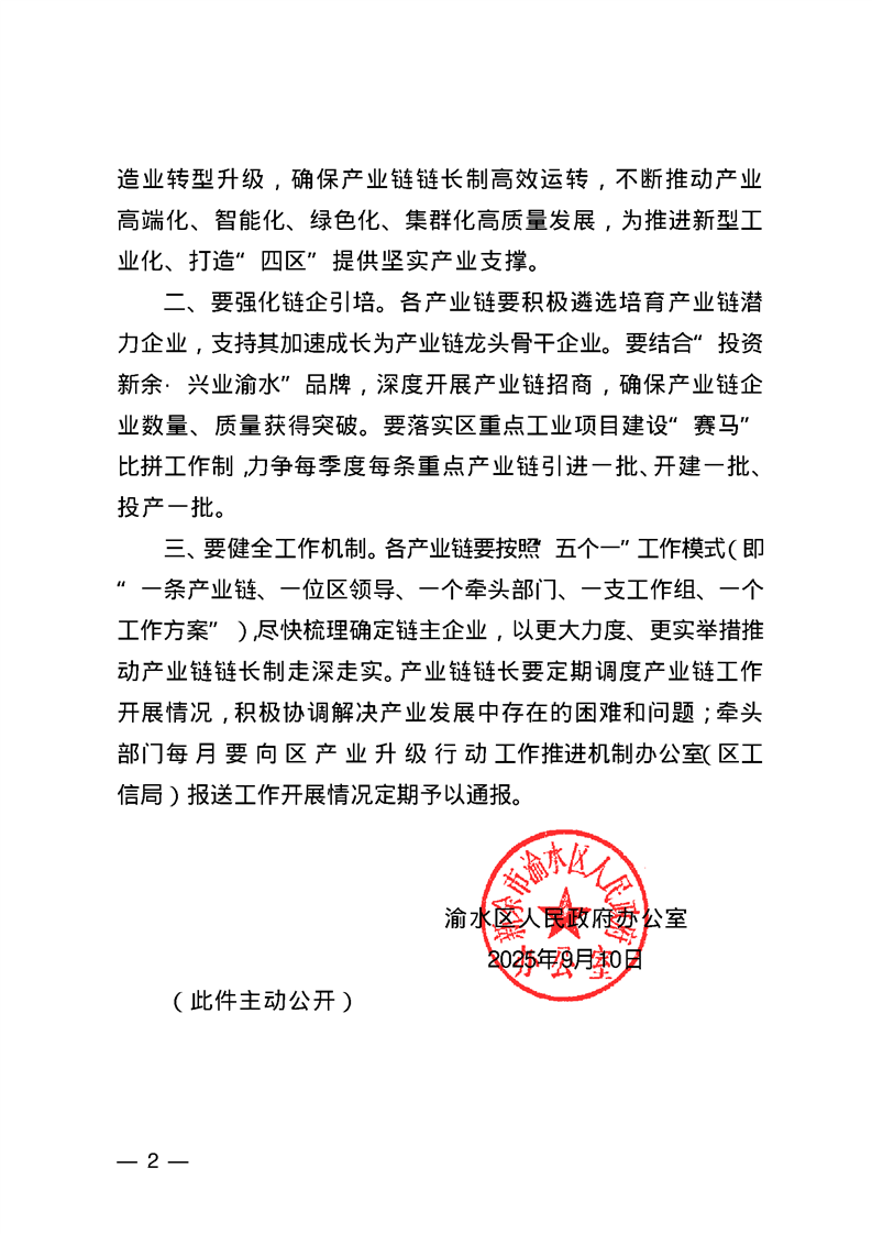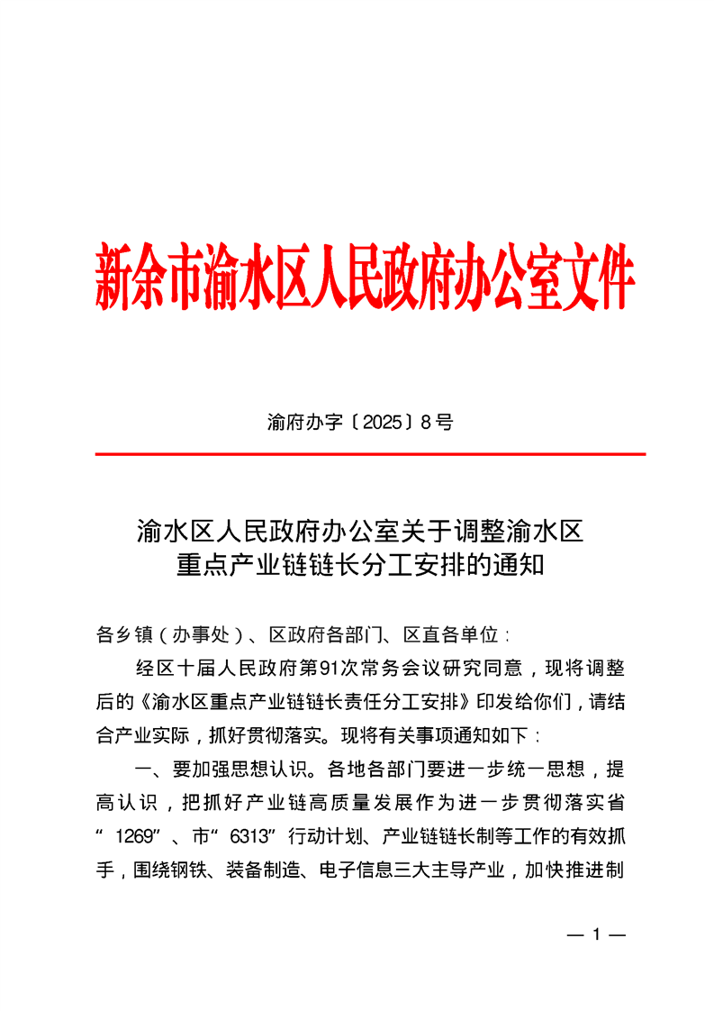 渝府辦字〔2025〕8號 渝水區(qū)人民政府辦公室關(guān)于調(diào)整渝水區(qū)重點產(chǎn)業(yè)鏈鏈長分工安排的通知