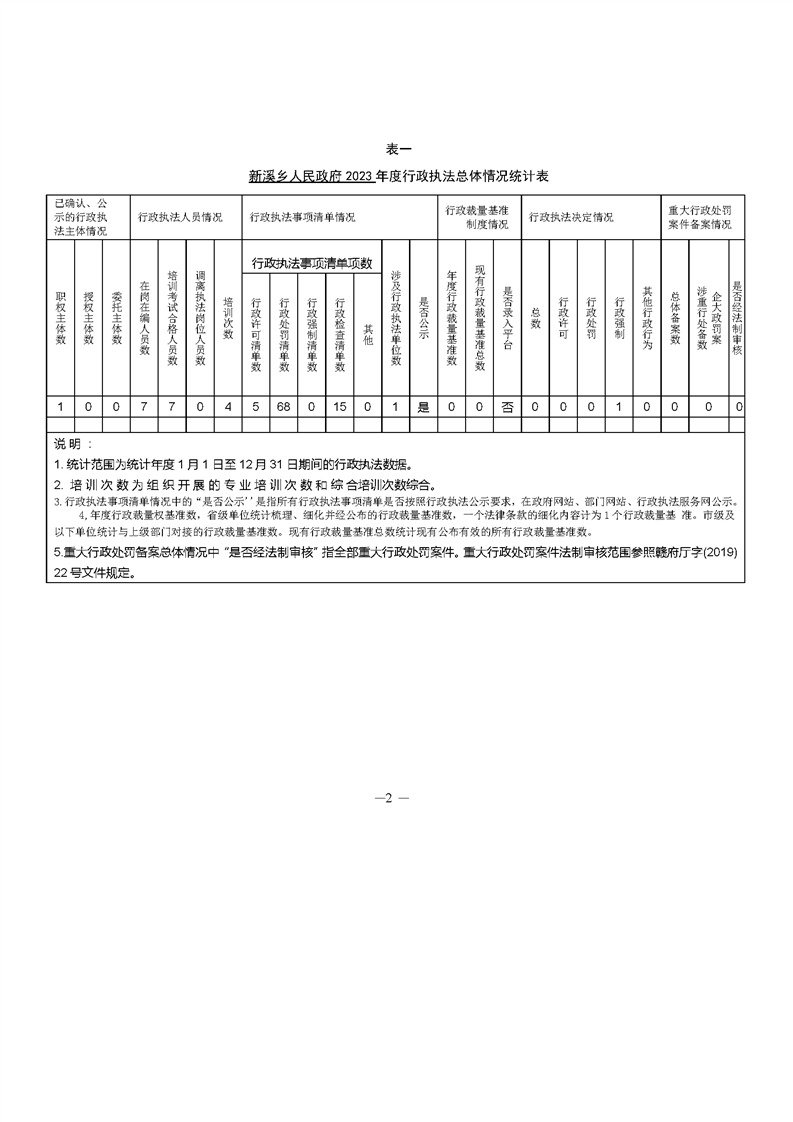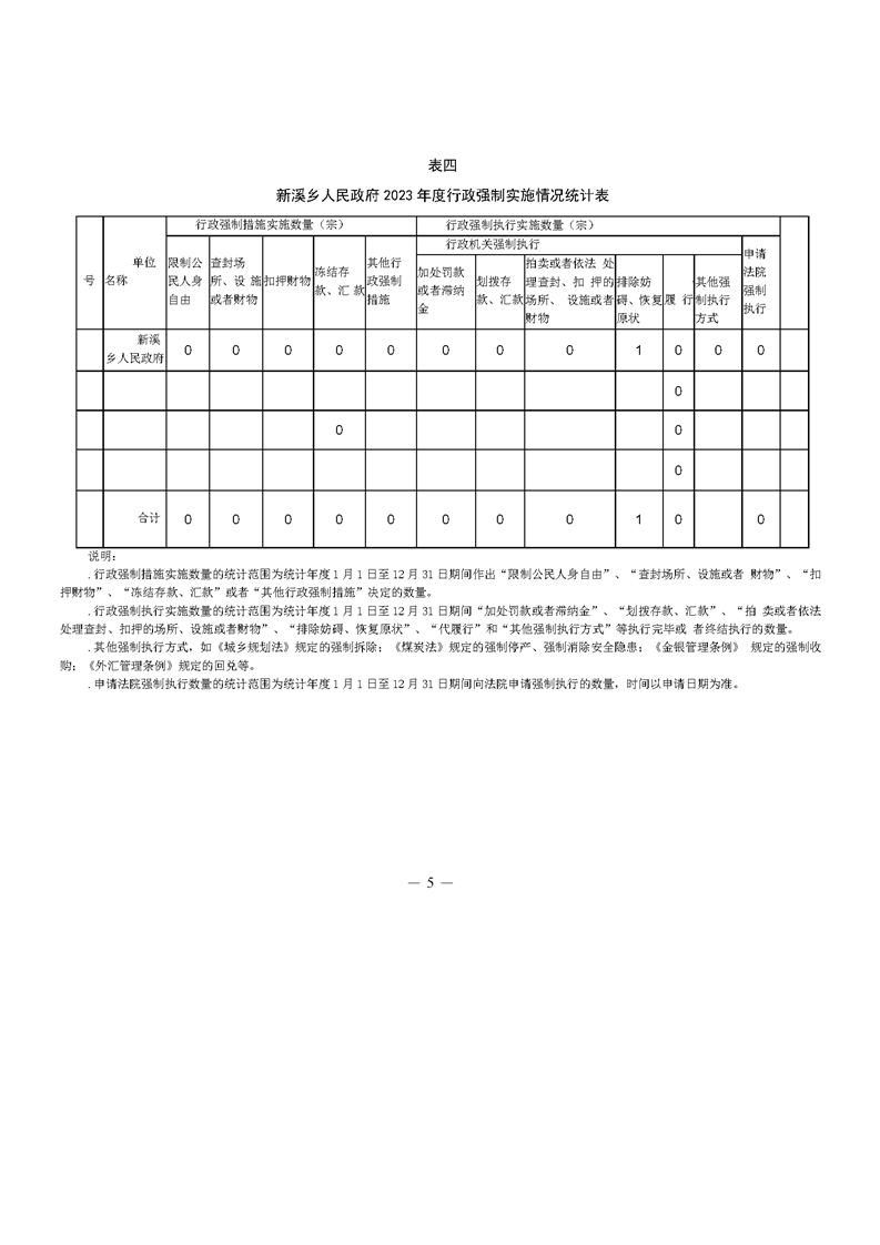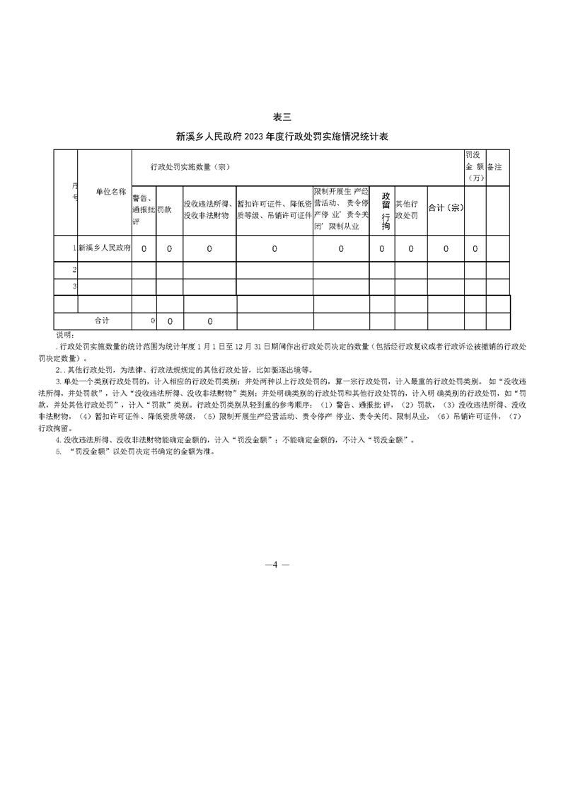 新溪鄉(xiāng)人民政府2023年度行政執(zhí)法數(shù)據(jù)年報