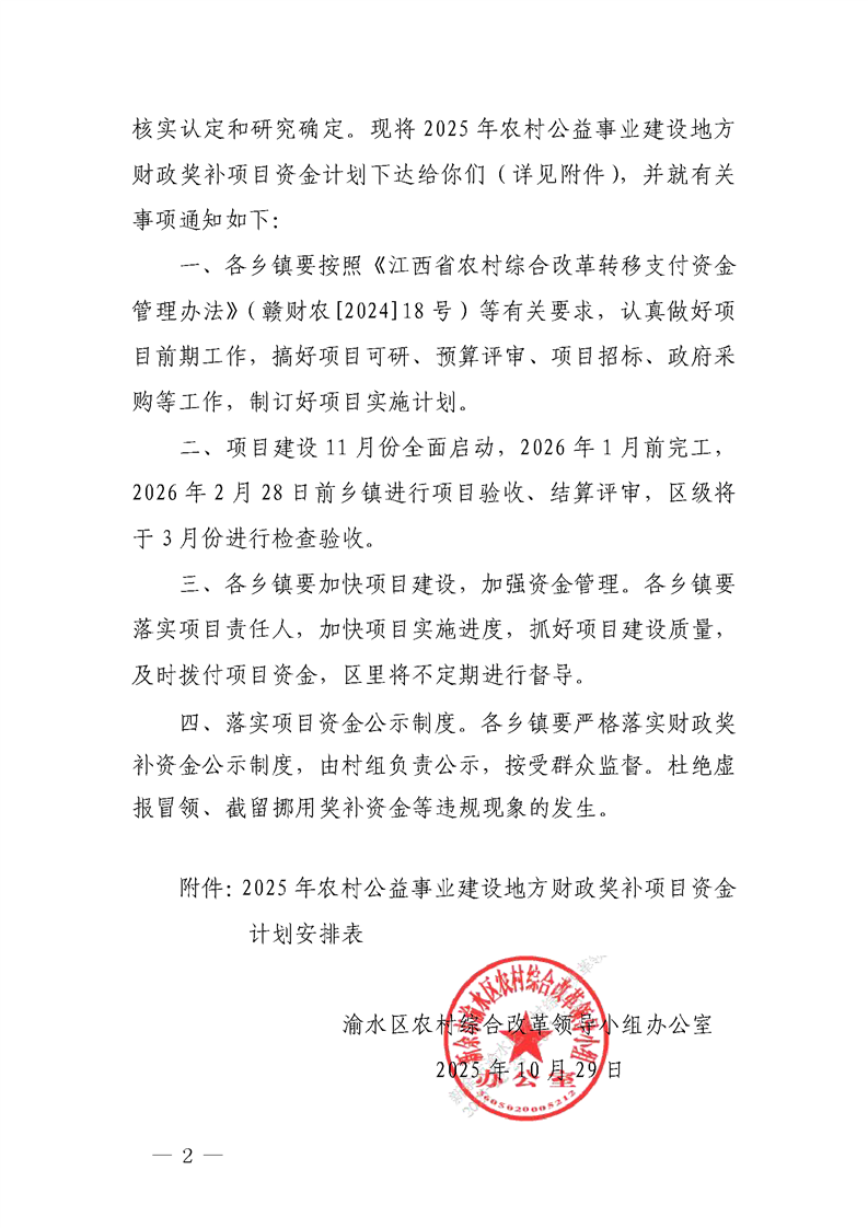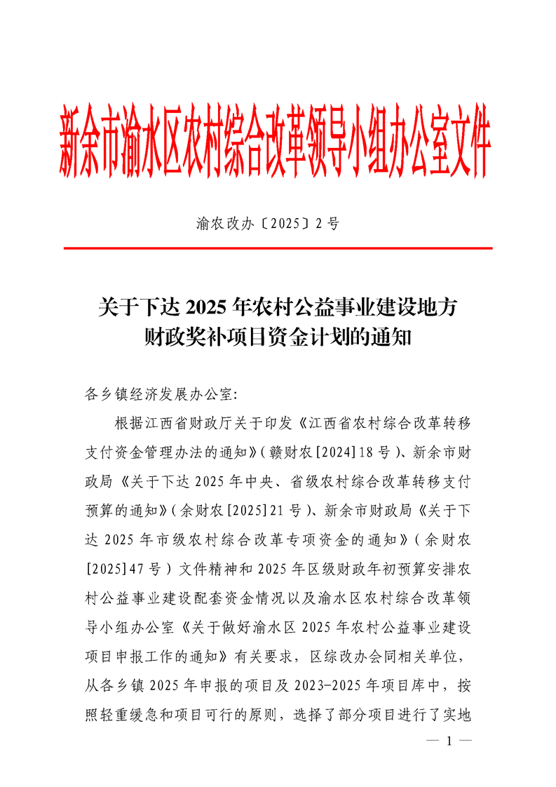 關(guān)于下達(dá)2025年農(nóng)村公益事業(yè)建設(shè)地方財政獎補(bǔ)項(xiàng)目資金計劃的通知