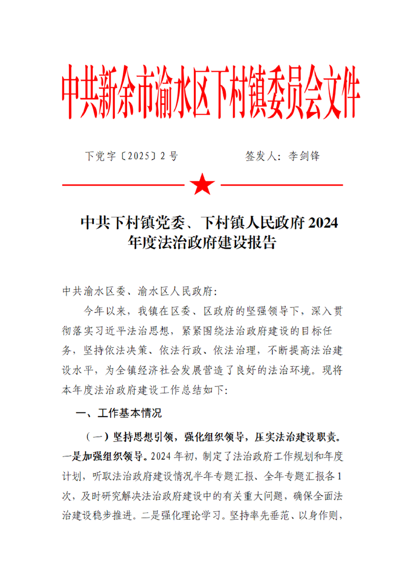 下村鎮(zhèn)2024年度法治政府建設(shè)報(bào)告