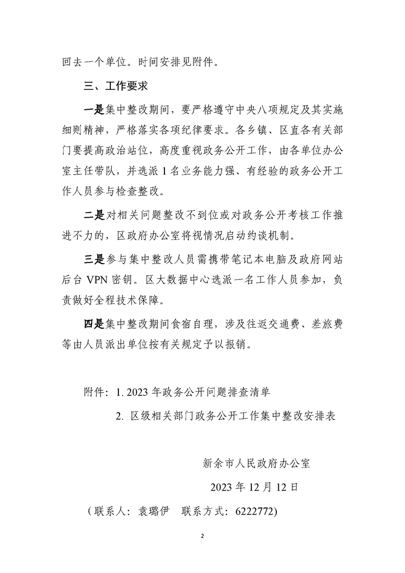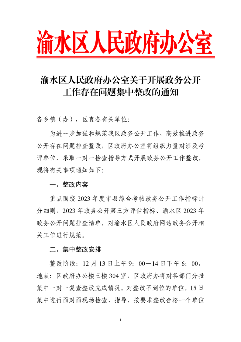 渝水區(qū)人民政府辦公室關于開展政務公開工作存在問題集中整改的通知