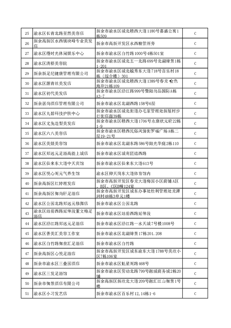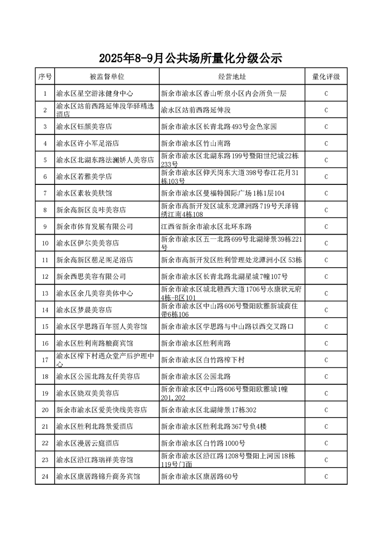 2025年8-9月公共場(chǎng)所量化分級(jí)公示