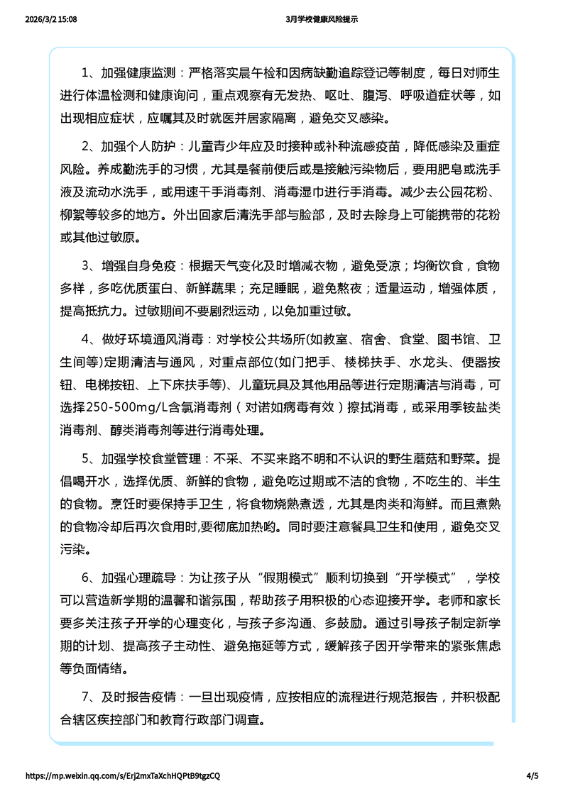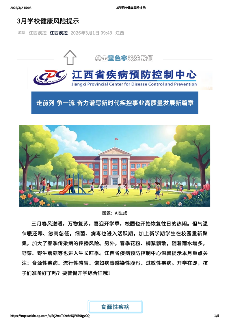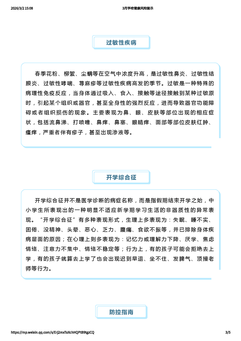 3月學校健康風險提示