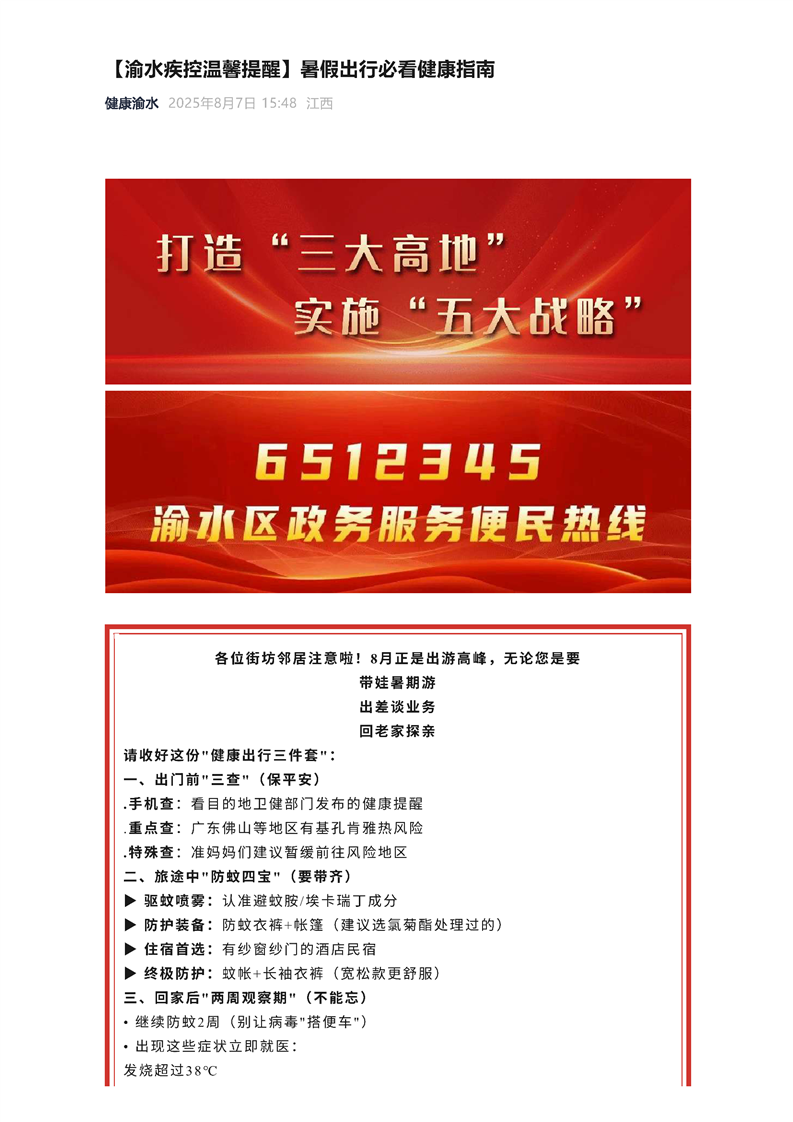 【渝水疾控溫馨提醒】暑假出行必看健康指南