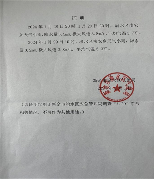 事故發(fā)生后,區(qū)委、區(qū)政府高度重視,并要求做好善后工作,涉事企業(yè)要舉一反三,排查隱患,確保安全生產(chǎn)措施落實(shí)到位。2024年1月30日,市安委會對渝水區(qū)人民政府下達(dá)《新余市安全生產(chǎn)委員會關(guān)于對新余市渝水區(qū)南安鄉(xiāng)“1 ·29”一般生產(chǎn)安全事故掛牌督辦通知書》(余安字〔2024〕5號),對本事故進(jìn)行掛牌督辦。