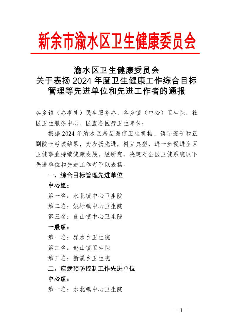 關(guān)于表?yè)P(yáng)2024年度衛(wèi)生健康工作綜合目標(biāo)管理等先進(jìn)單位和先進(jìn)工作者的通報(bào)