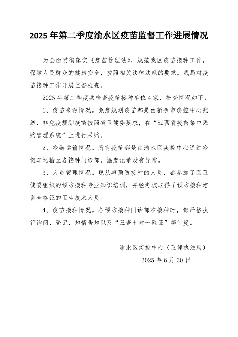 2025年第二季度渝水區(qū)疫苗監(jiān)督工作進(jìn)展情況