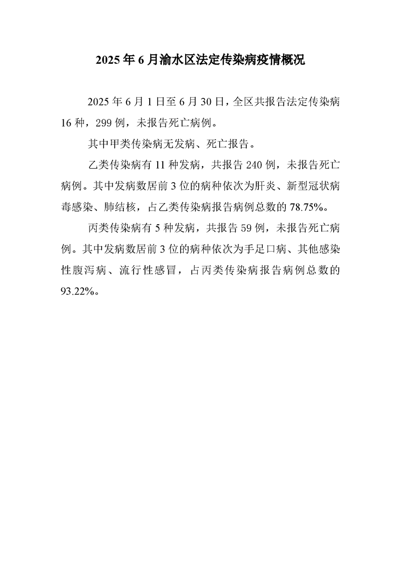 2025年6月渝水區(qū)法定傳染病疫情概況