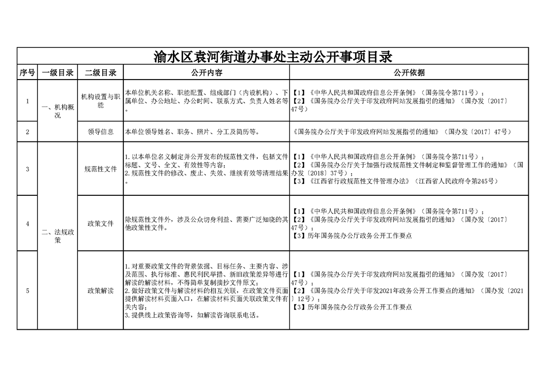渝水區袁河街道辦事處主動公開事項目錄