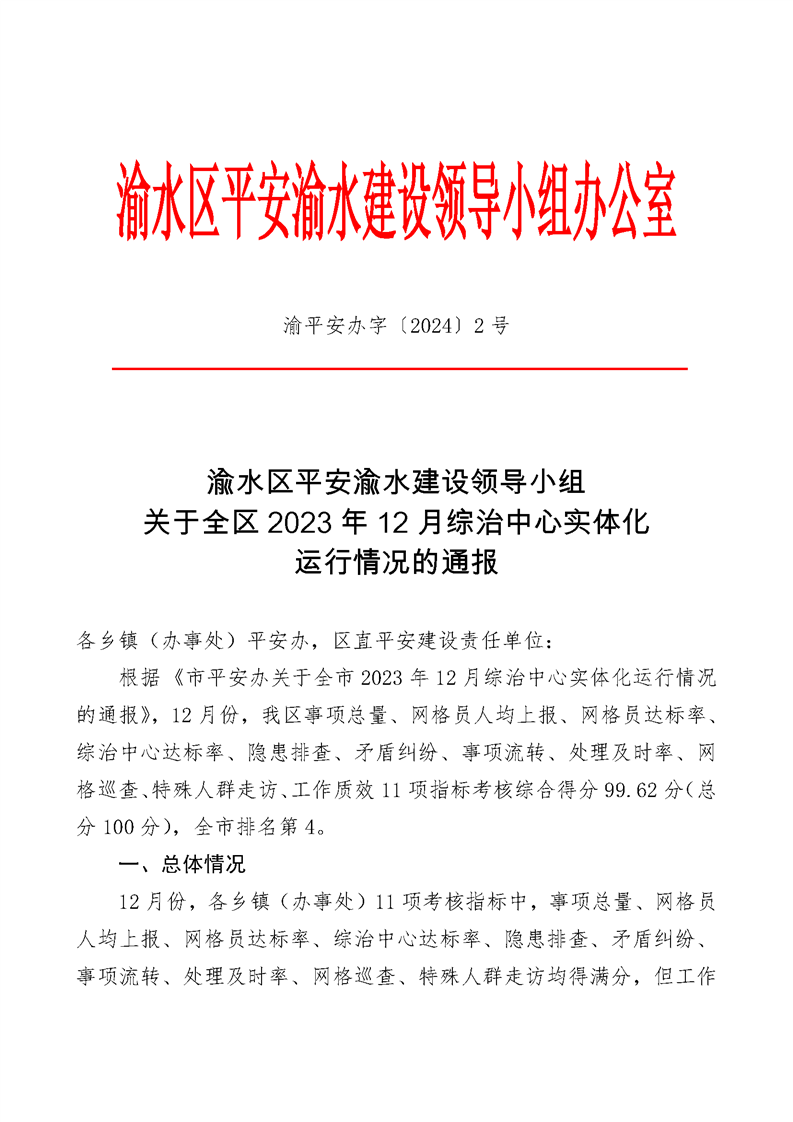 關(guān)于全區(qū)2023年12月綜治中心實(shí)體化運(yùn)行情況的通報(bào)